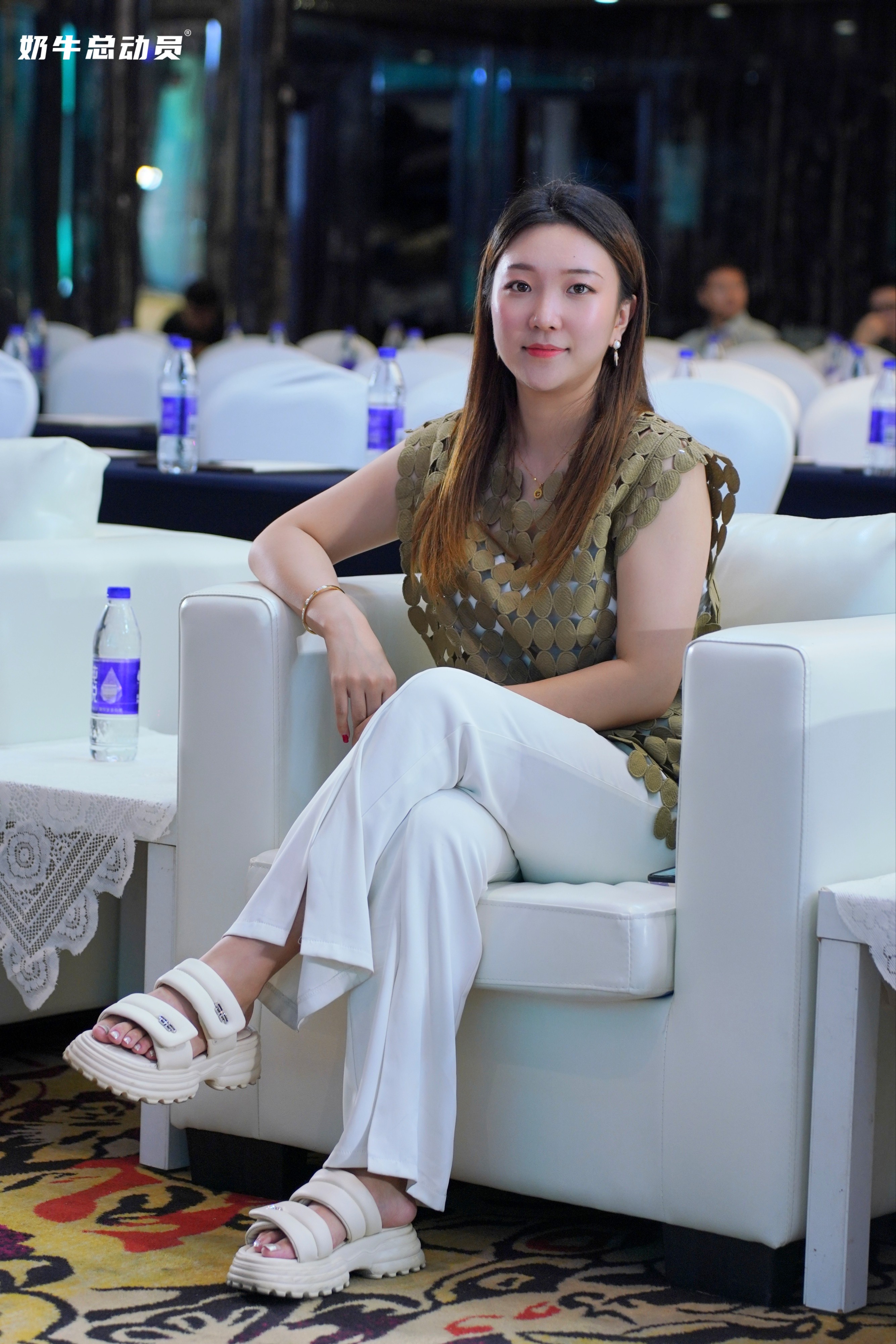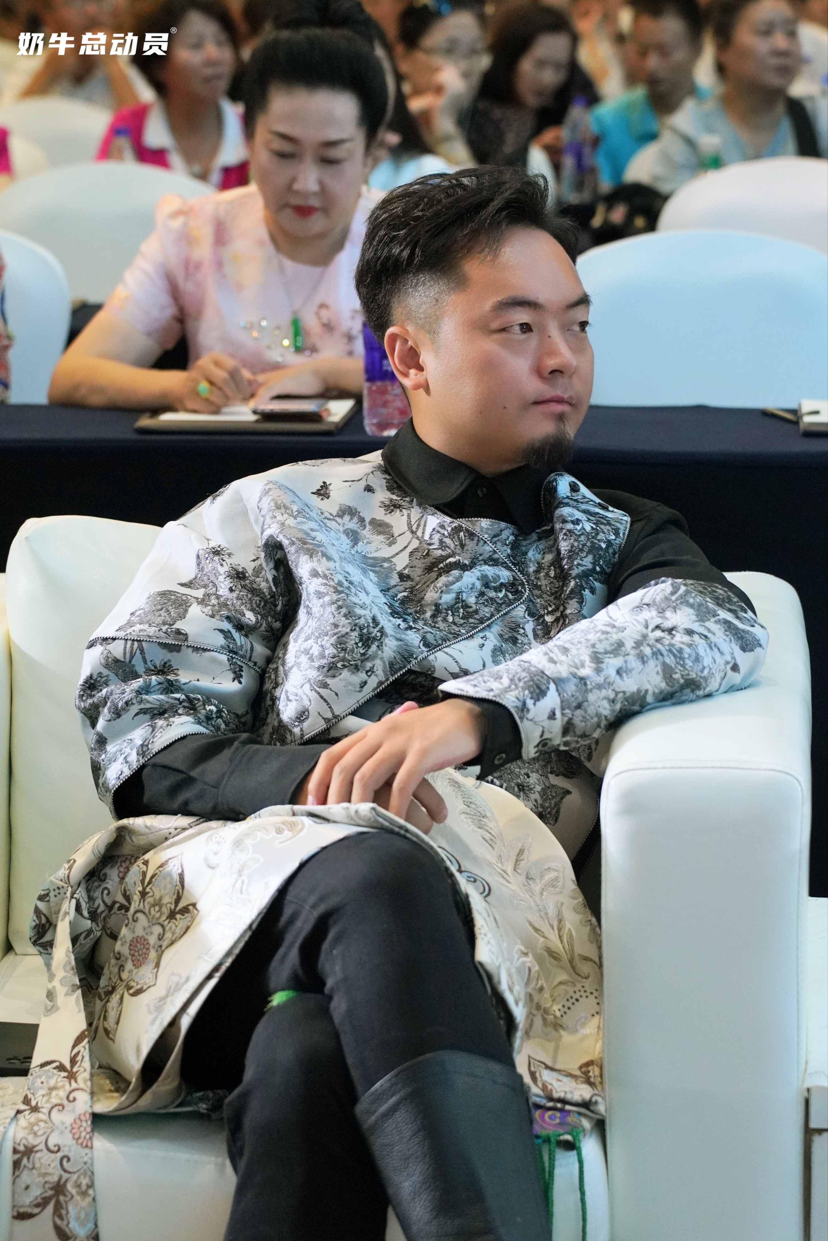 吕丽琴: 《奶牛总动员品牌发布会》台下观众和旁边的人交谈