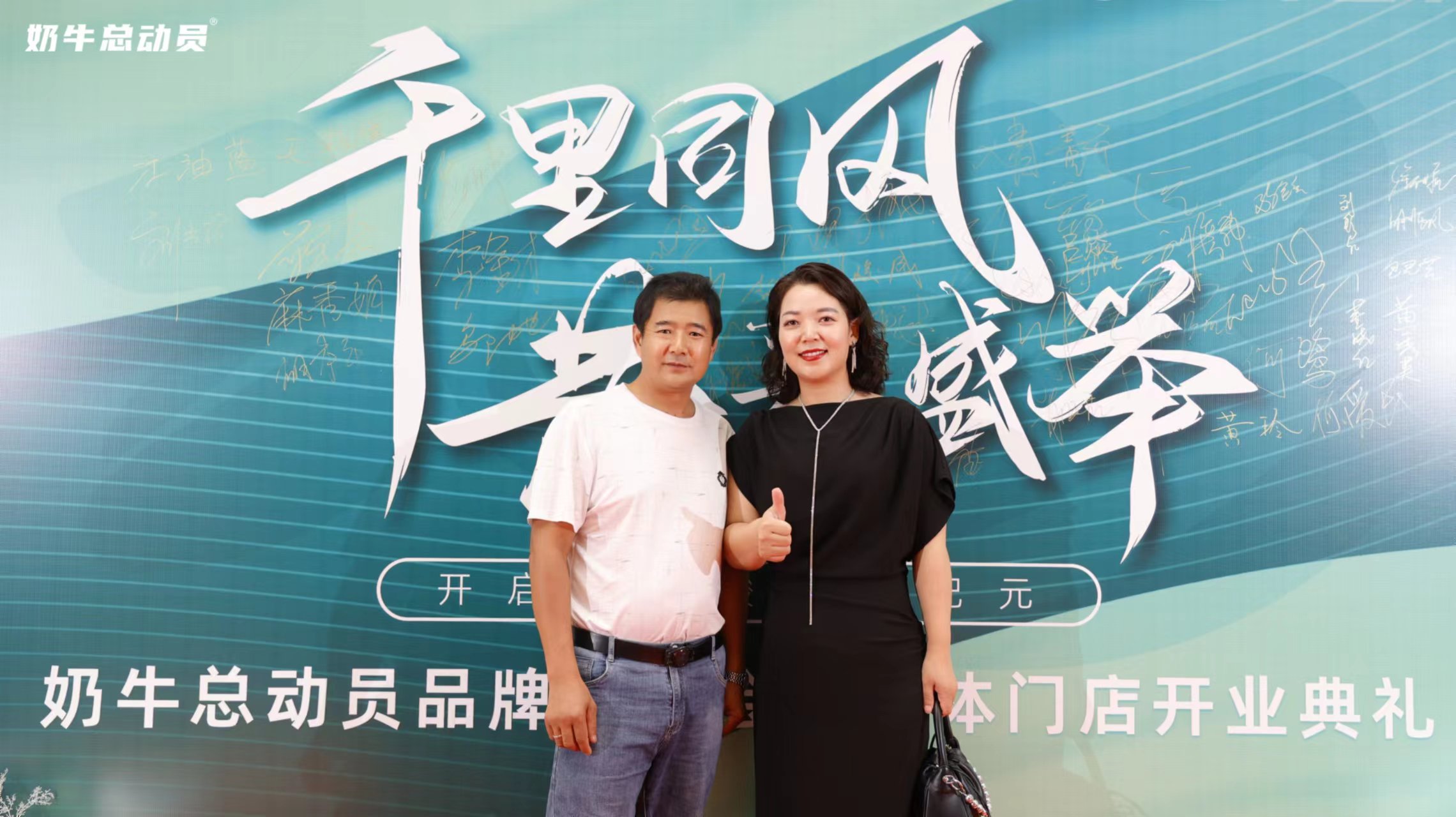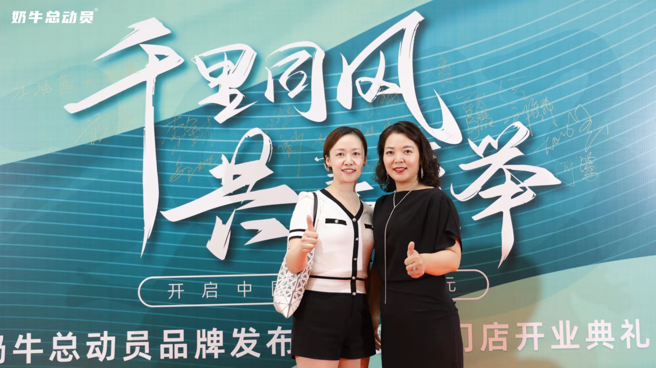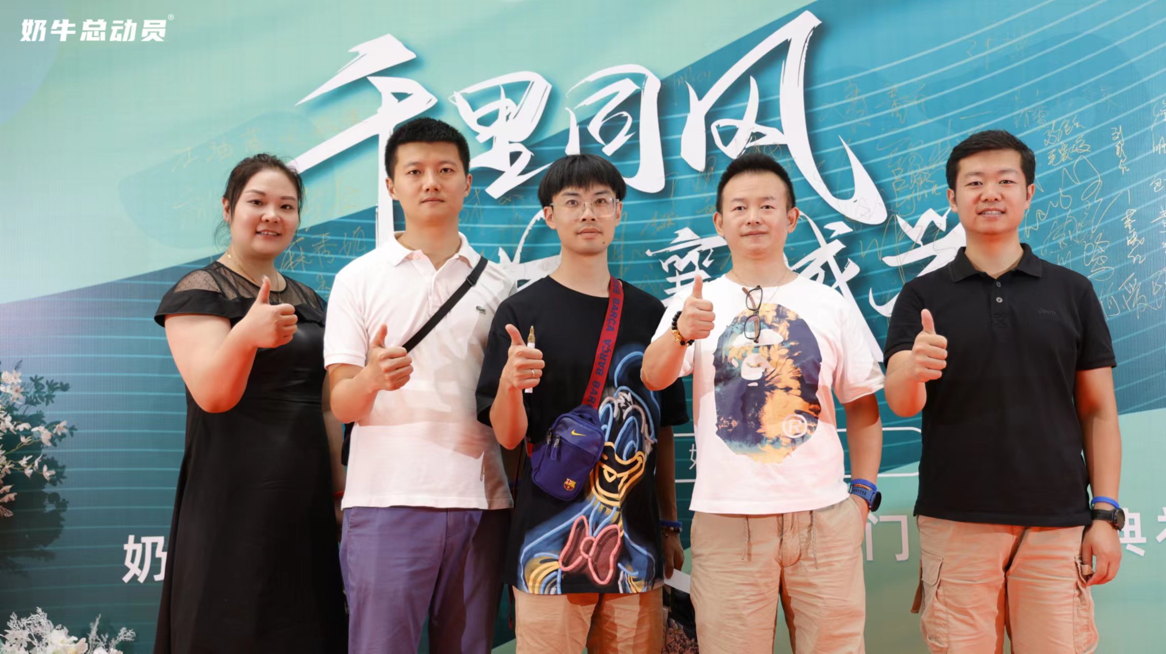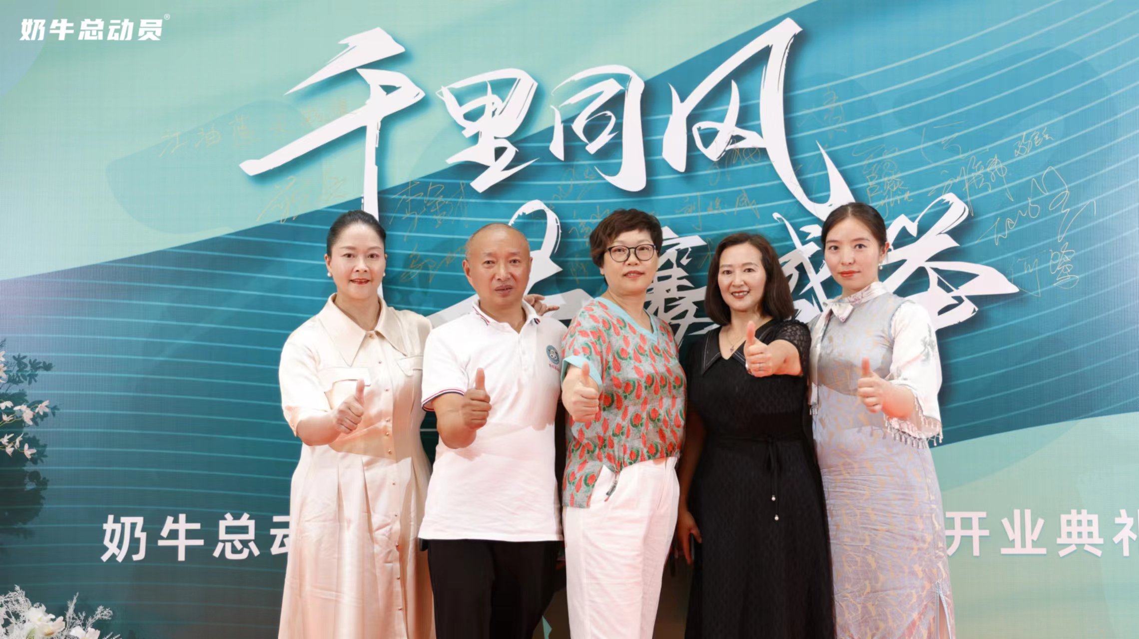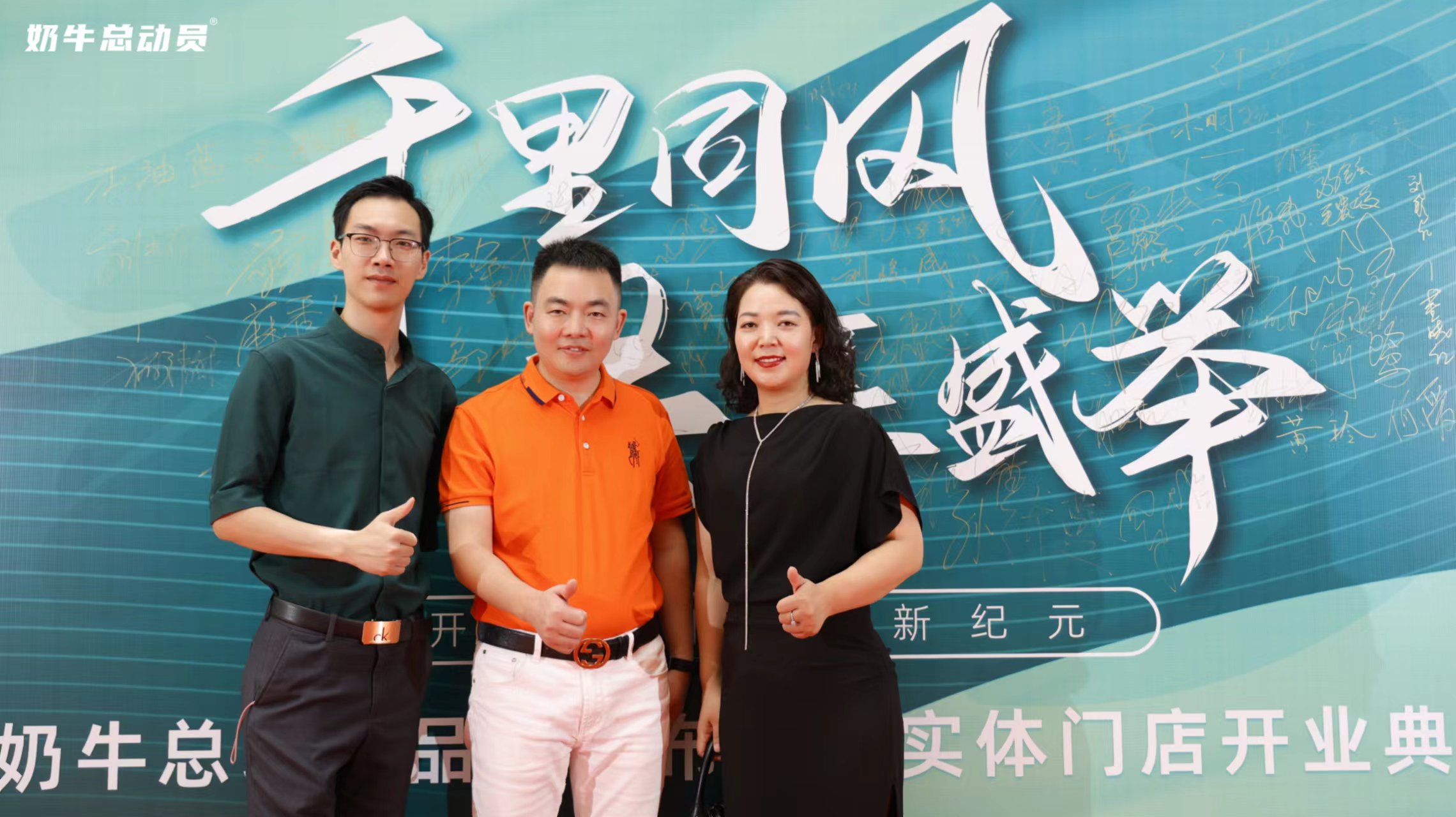 吕丽琴: 《奶牛总动员品牌发布会暨实体门店开业典礼》上,到场嘉宾在典礼上拍照留念