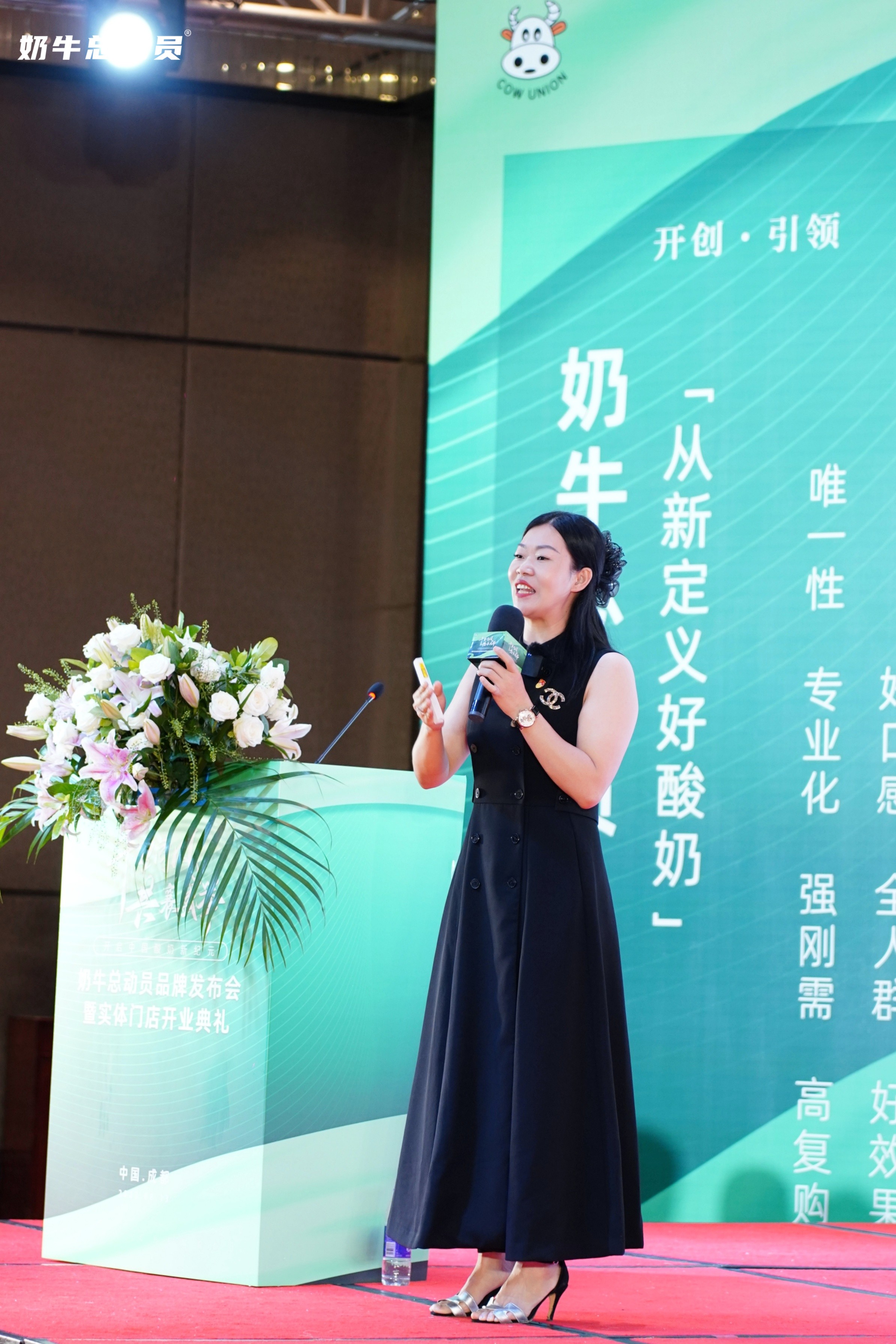 吕丽琴:《奶牛总动员品牌发布会》上,吕丽琴老师上台演讲