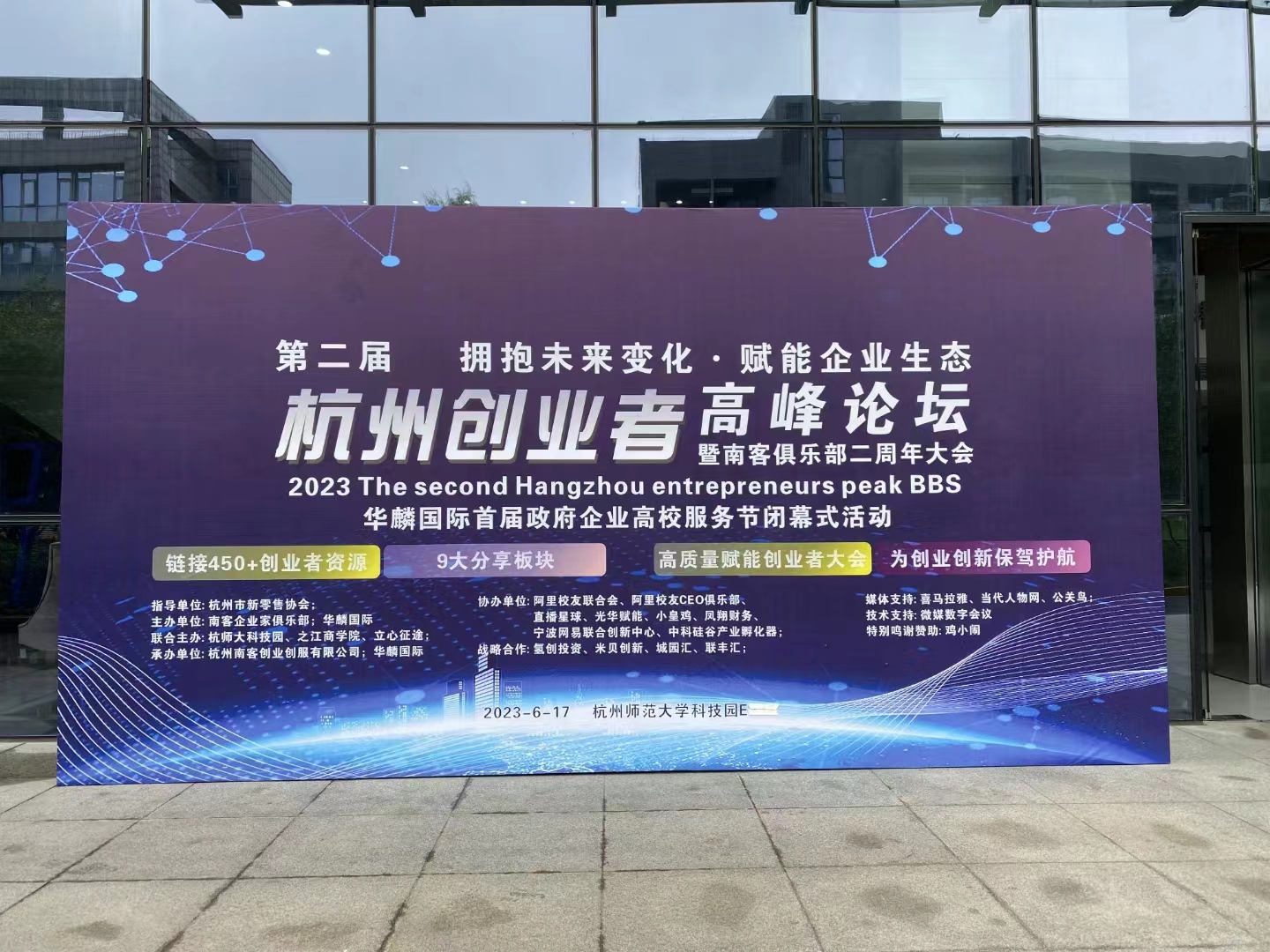 管鹏:蒋云超老师发起的《第二届杭州创业者高峰论坛暨南客俱乐部二周年大会》大厅海报