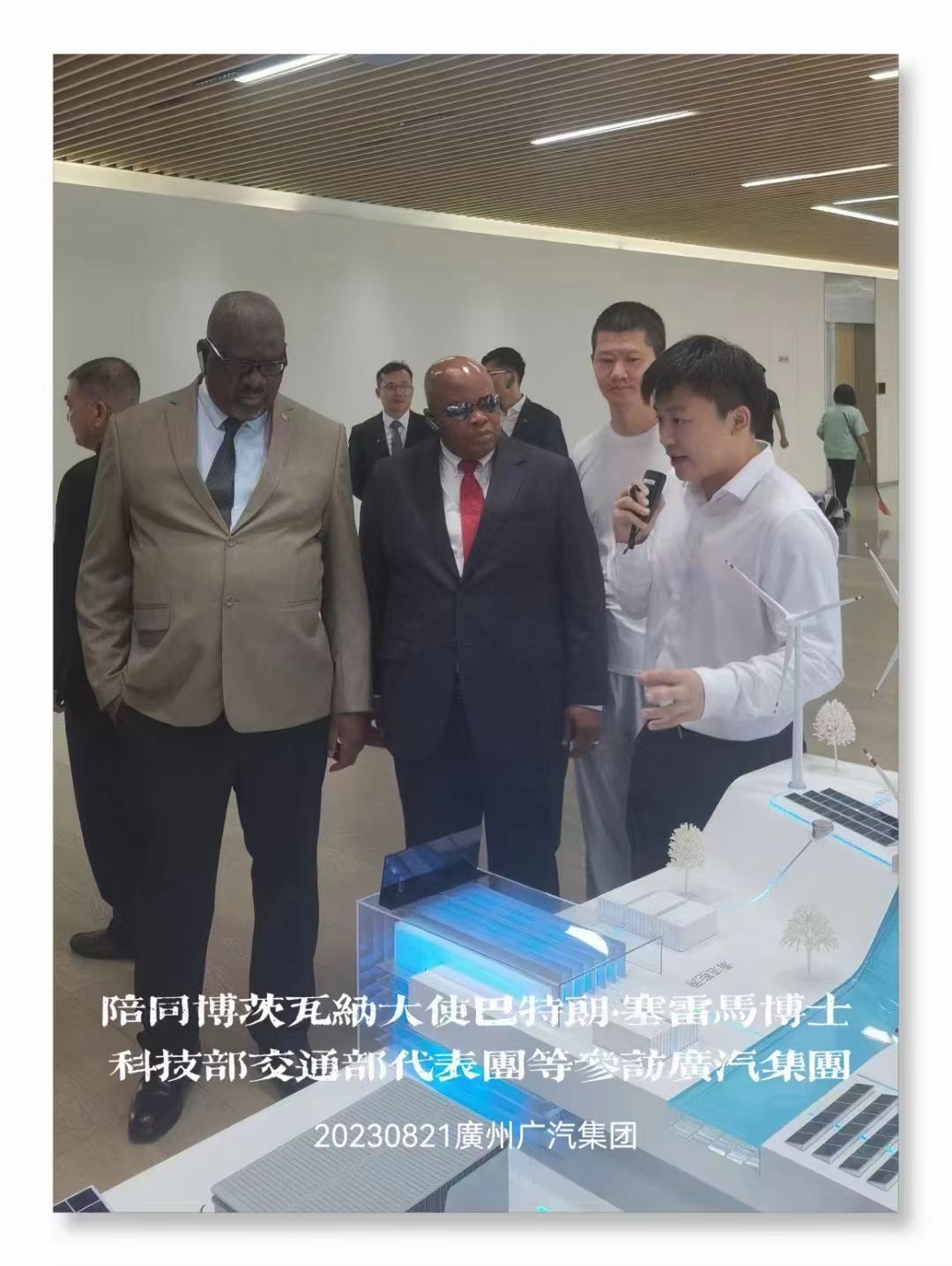 陈人通:广汽集团经理向陈人通老师和驻华大使及科技部交通部介绍广汽集团品牌车的清洁能源