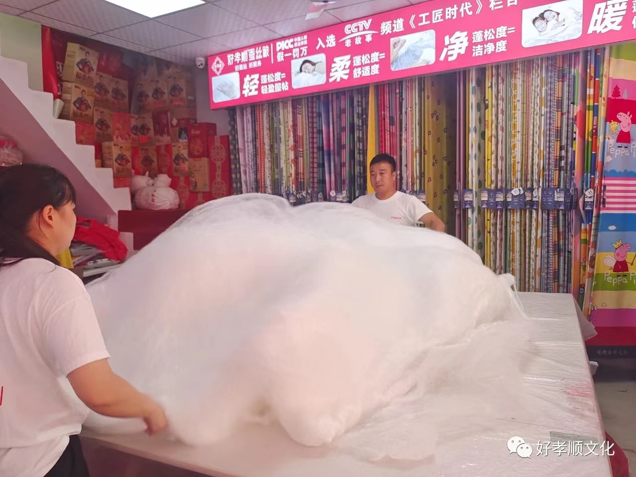 吕奇嵩:好孝顺蚕丝被进行促销活动,吸引很多顾客前来关注