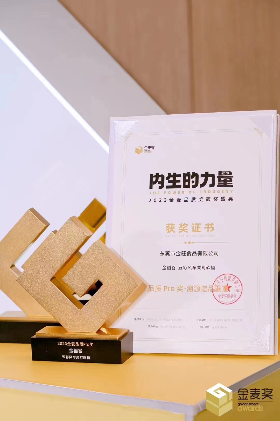 陈瑞武:金稻谷五彩风车国町软糖获得2023金麦品质Pro奖和获奖证书