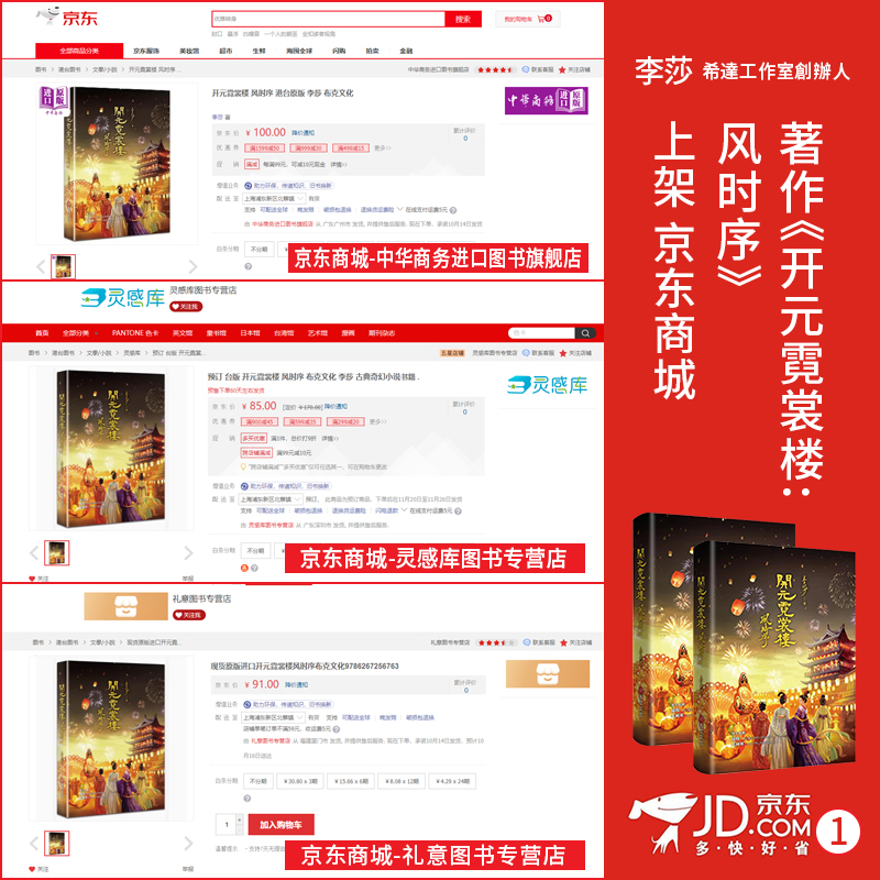 李莎:著作《开元霓裳楼:风时序》上架京东商城——联合书店专卖店和神话图书专营店