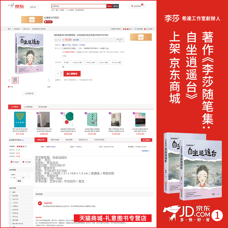 李莎:著作 《李莎随笔集:自坐逍遥台》上架京东商城——礼意图书专营店