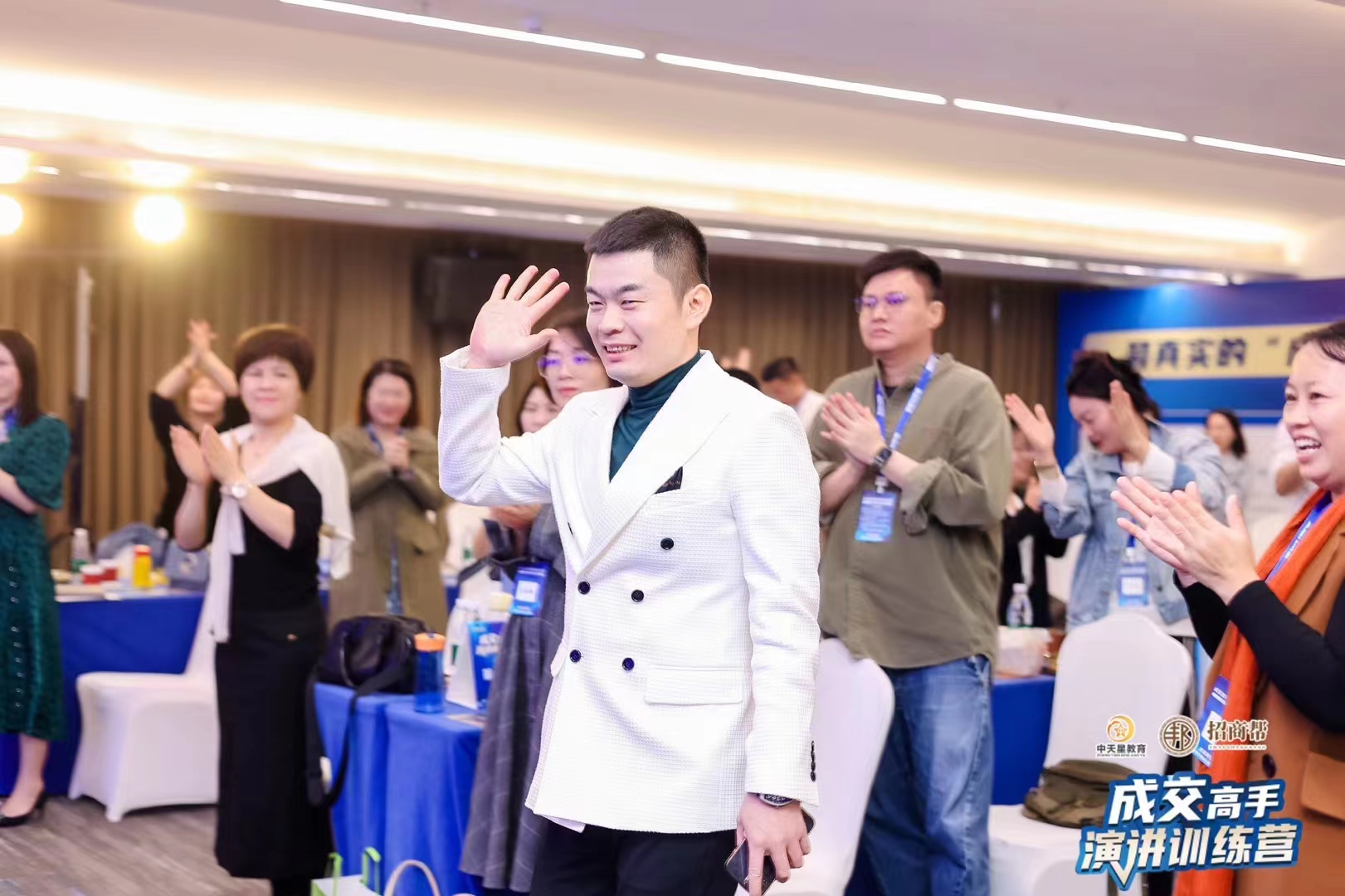 姜立鹏:姜立鹏老师到场,学员们纷纷起立鼓掌,夹道欢迎姜老师的到来