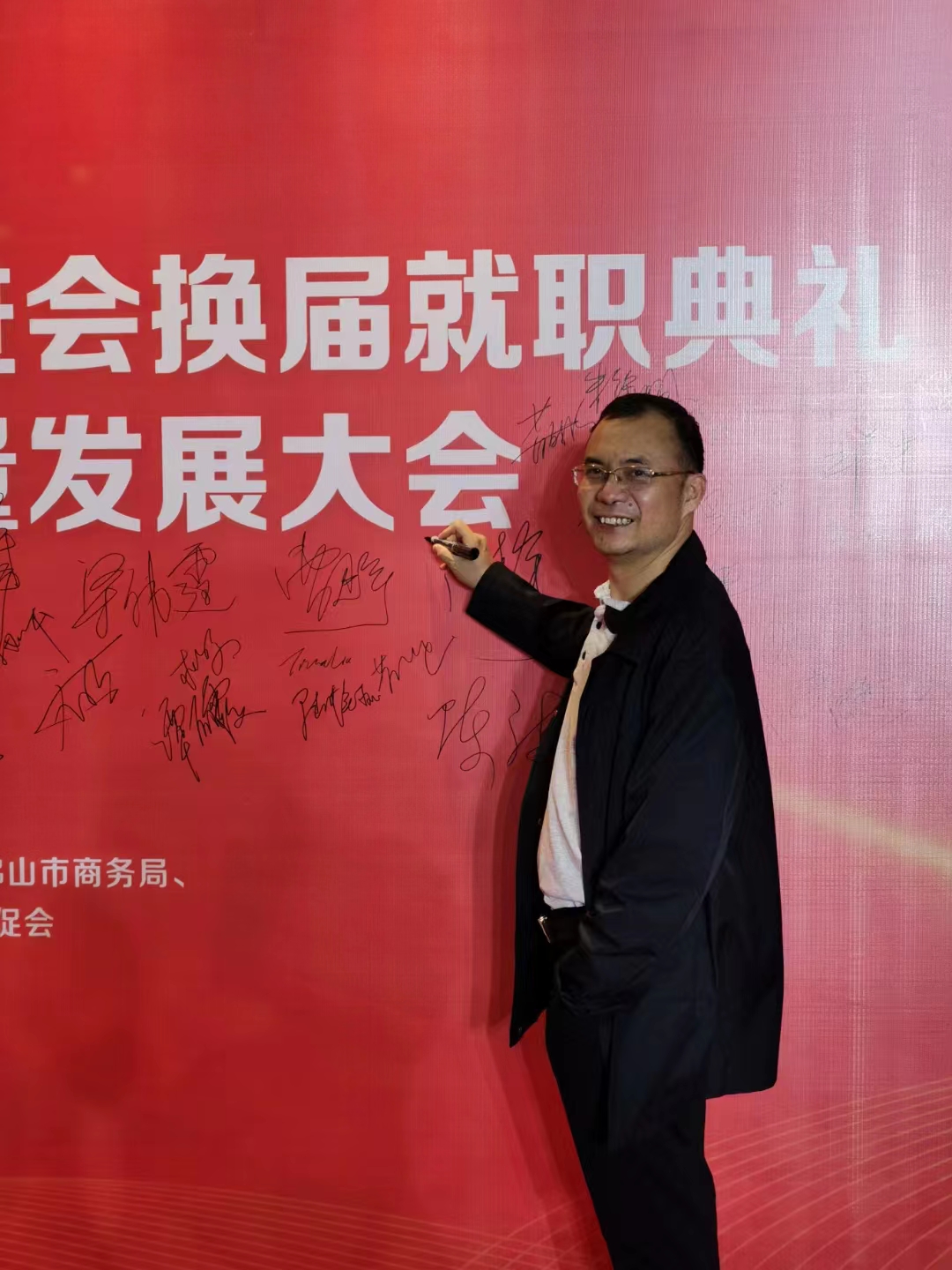 张靖笙:张靖笙老师在签名墙前留影,他表示很高兴能够受邀前来聆听优秀企业故事
