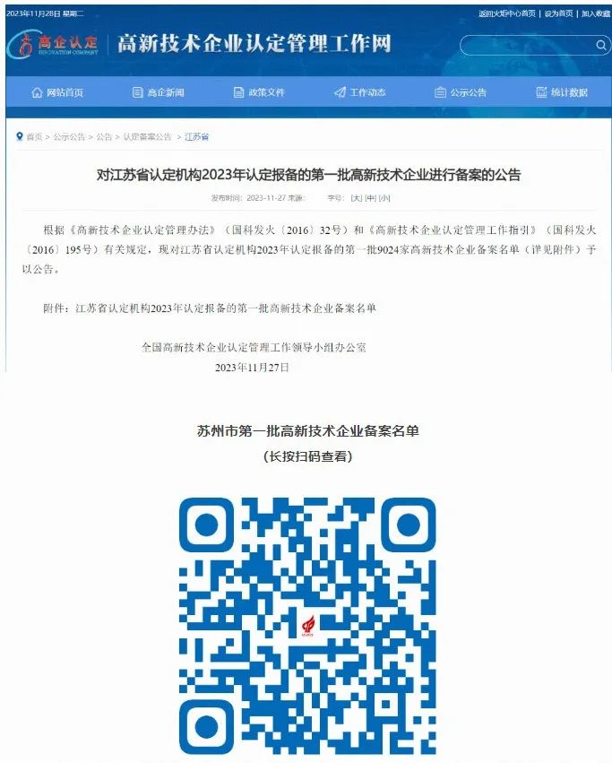 苏引华:高新技术企业认定管理工作网下发公告,大脑营行企业成为2023年首批认证高新技术企业,扫码可查看名单