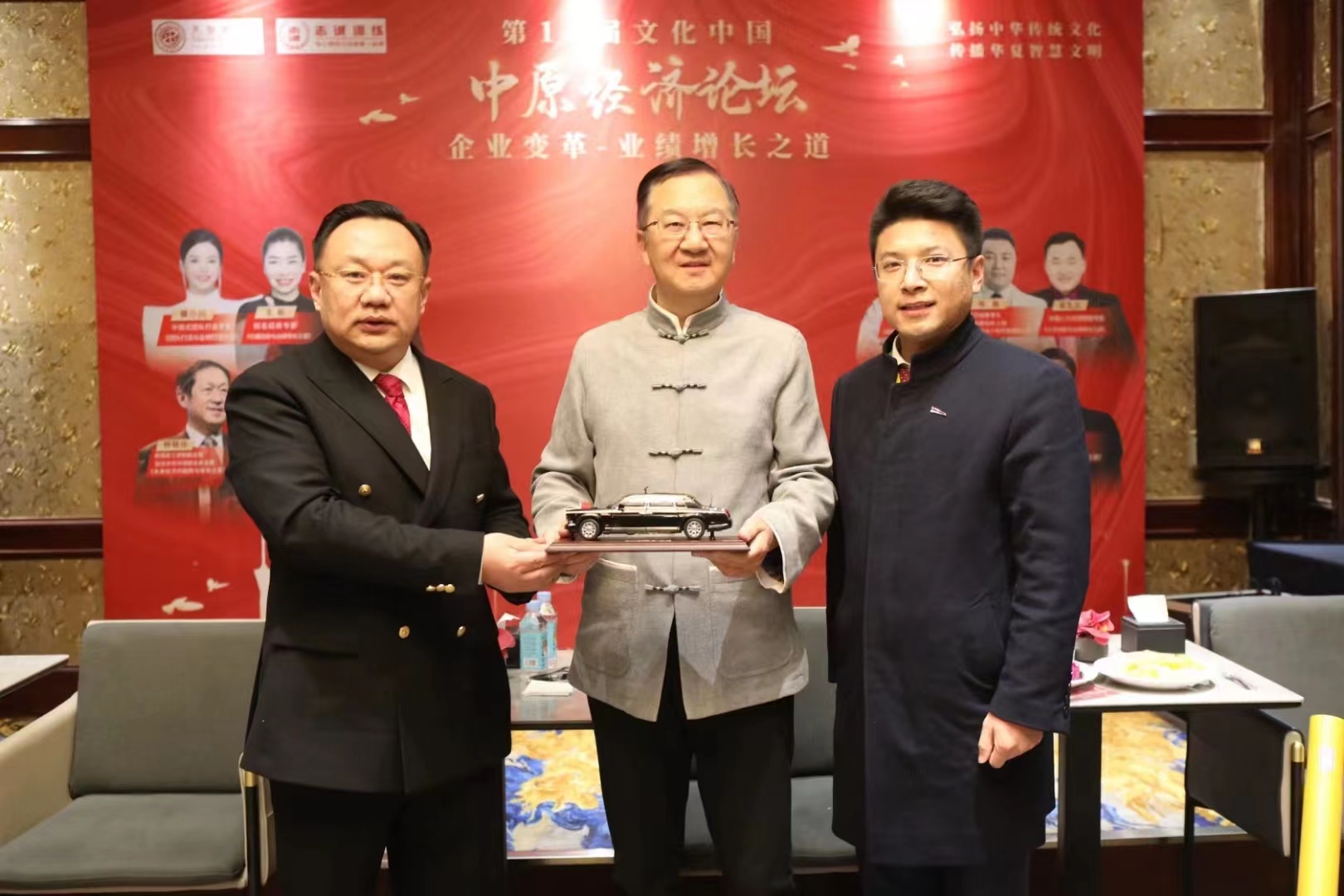 张志诚:张志诚老师给参会重要嘉宾,当代著名易学专家张其成老师,赠送红旗汽车模型,为未来发展合作表示敬意与感谢