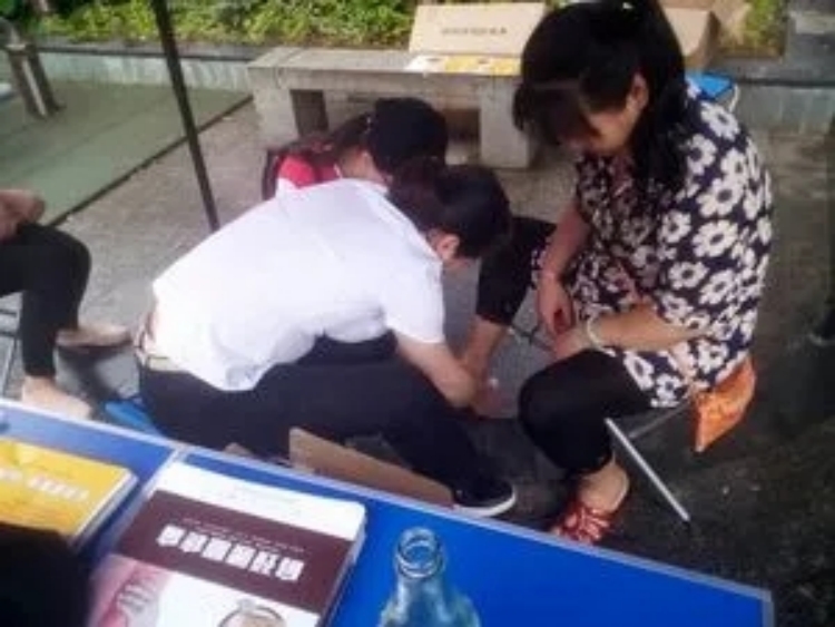 张杰: 患者脚部肿了现场体验膏药,贴上去热热的,敷用后效果很好