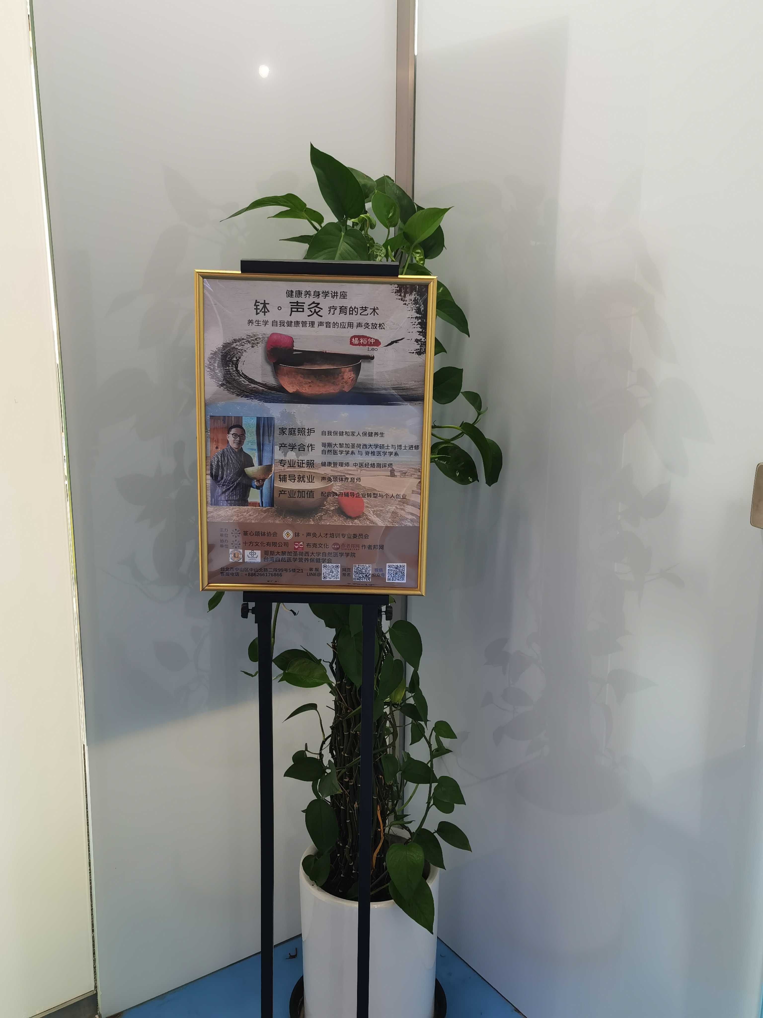 杨裕仲:杨裕仲老师活动宣传单打印并精心装裱起来,放在展示架上