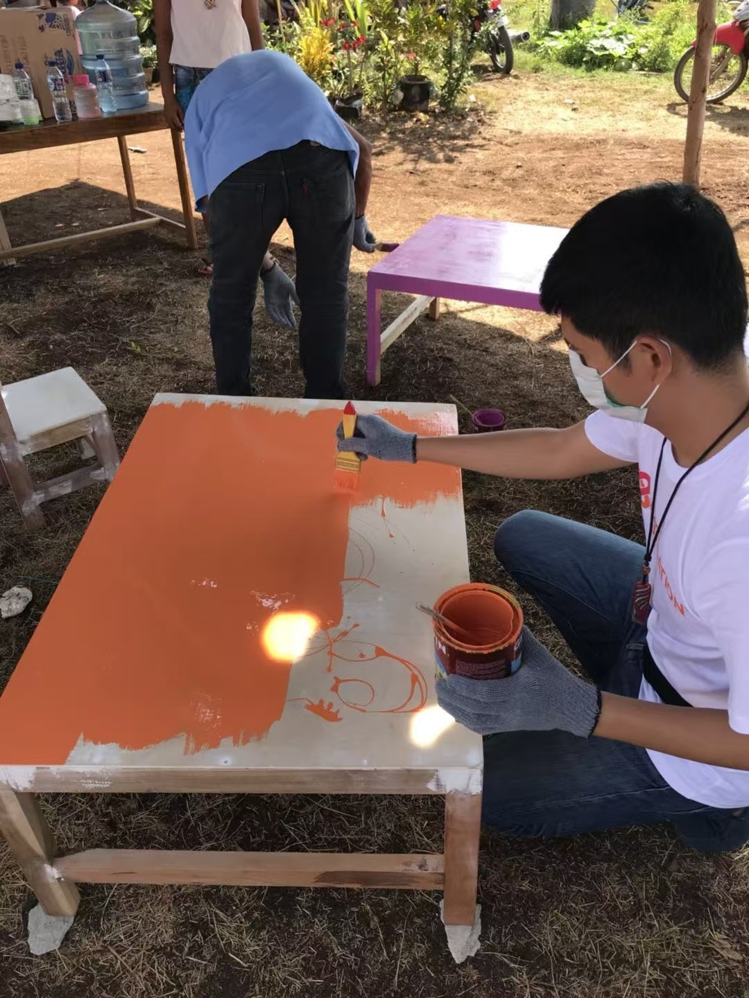 杨杨:杨杨老师和俱乐部成员给小朋友分发物资现场照片