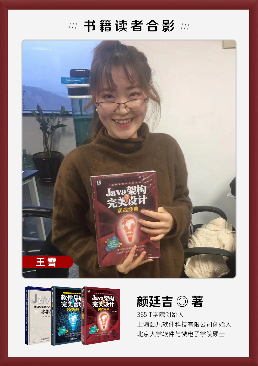颜廷吉:颜廷吉_《Java架构之完美设计》_王雪实拍