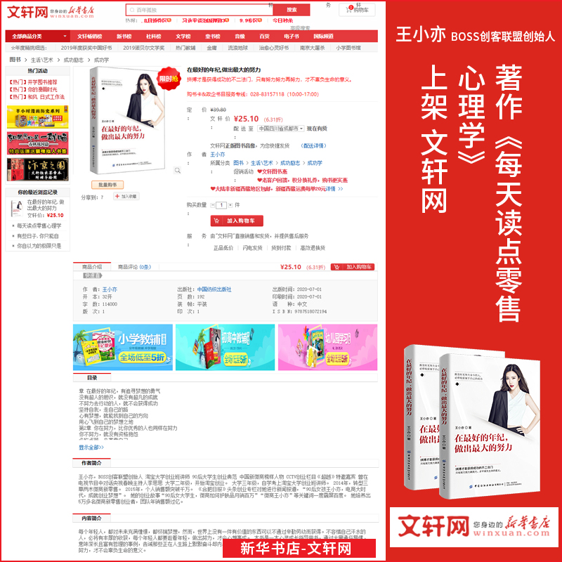 王小亦:著作《在最好的年纪,做出最大的努力》上架淘宝网
