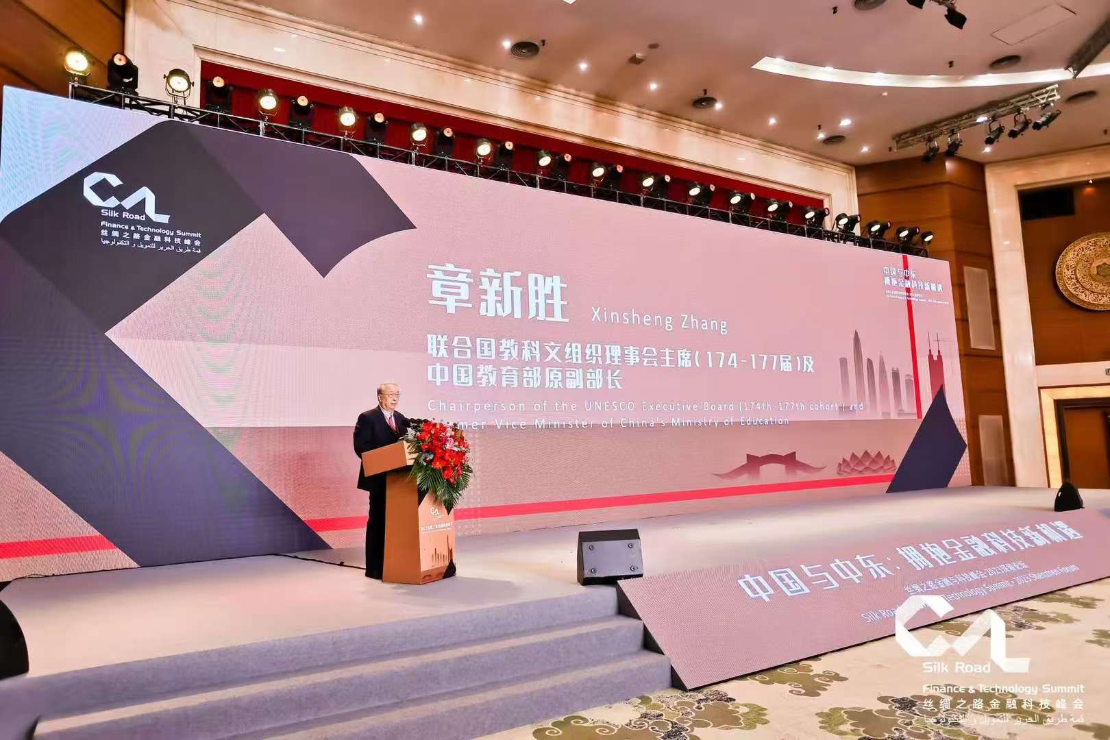 刘博微:联合国教科文组织 理事会主席(174-177届)及中国教育部原副部长章新胜上台致辞