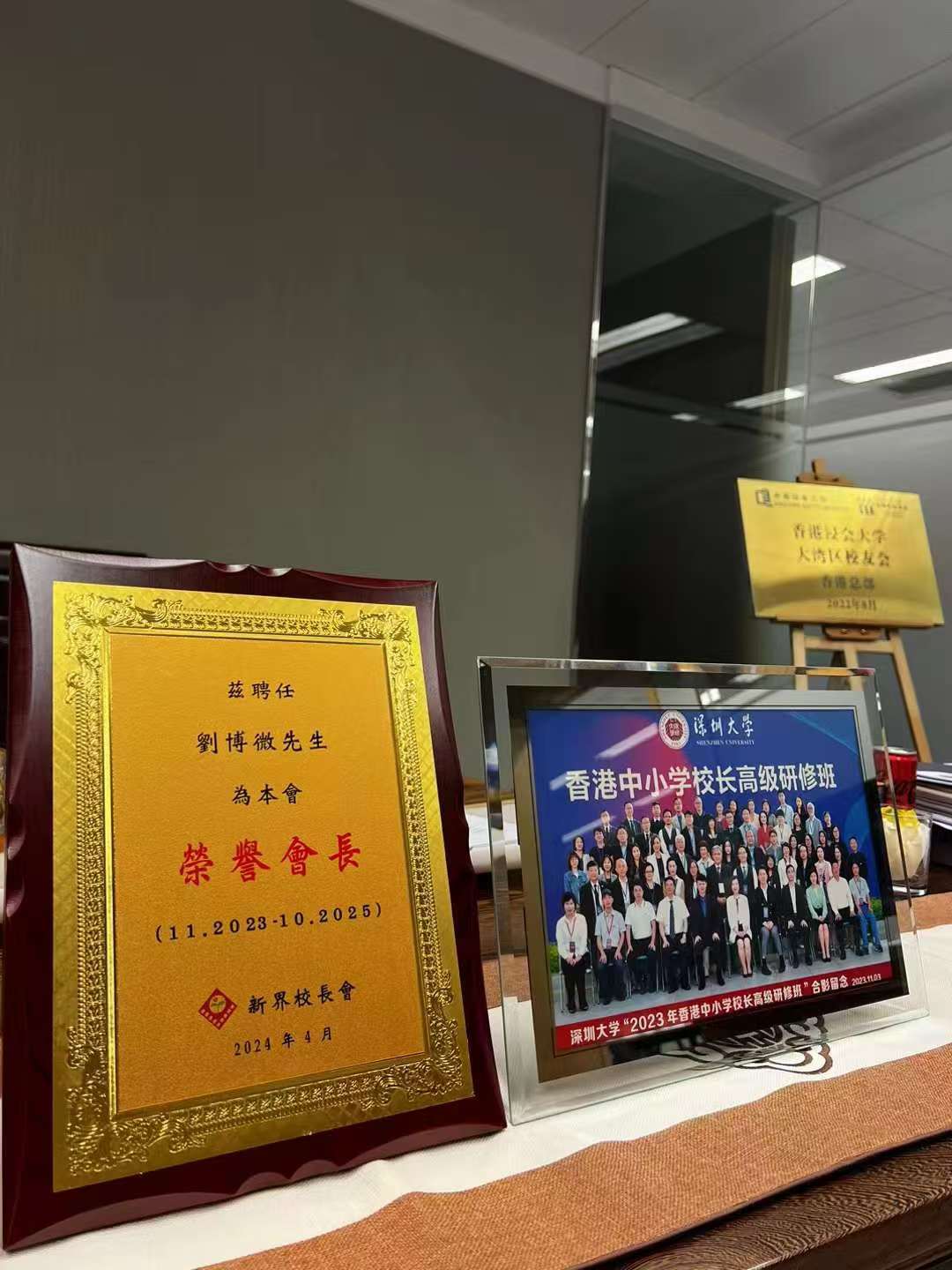 刘博微: 刘博微老师将证书摆放在办公桌上拍照记录