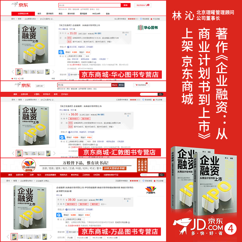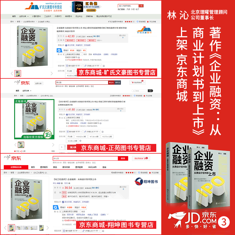 林沁:《企业融资:从商业计划书到上市》一一上架京东各大旗舰店