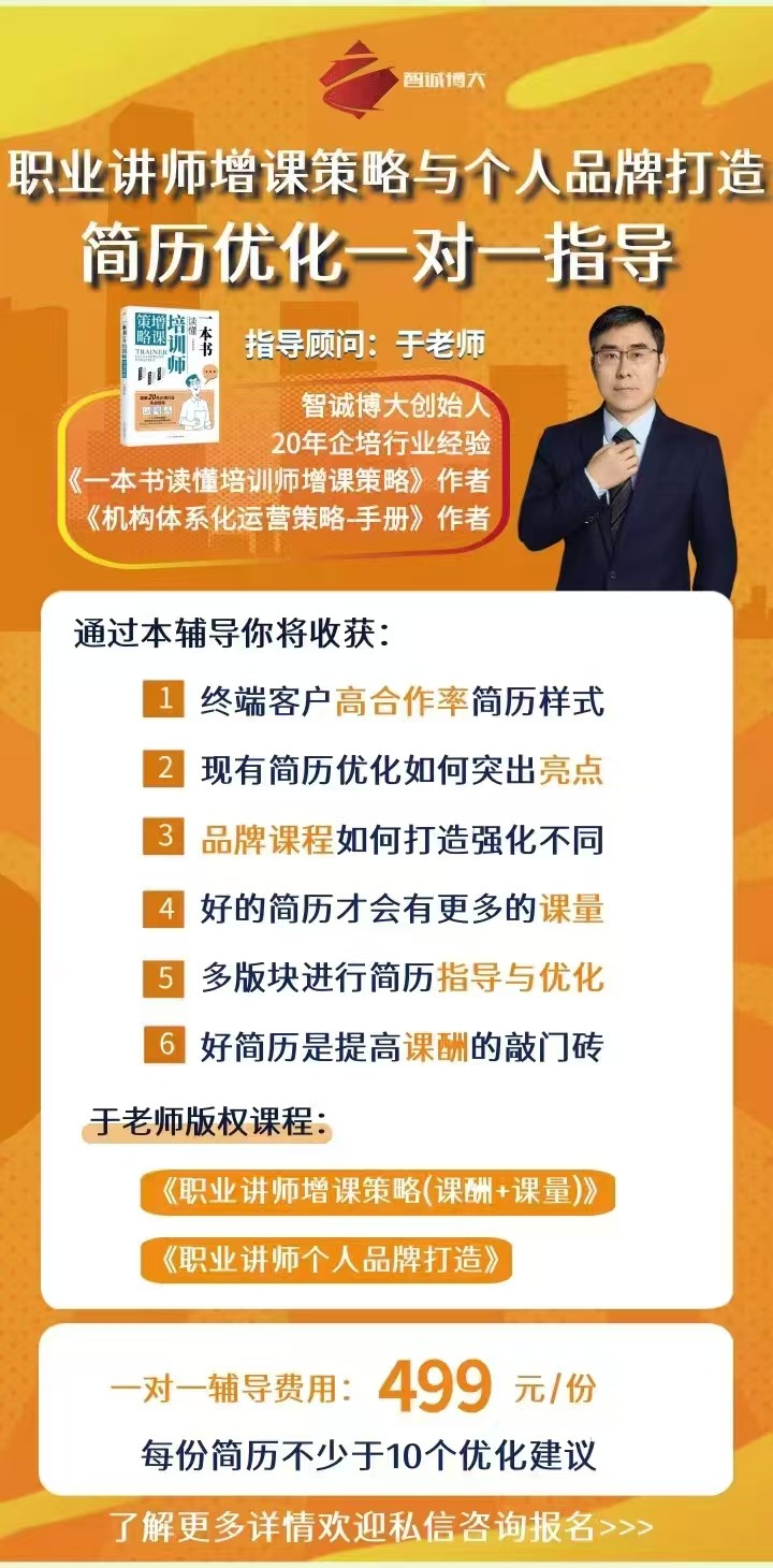 于椿建:品牌课程:职业讲师增课策略与个人品牌打造——简历优化一对一指导