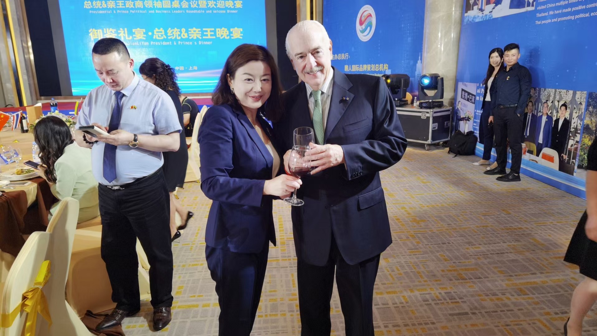 魏莉雯:与泰王国亲王素博·巴莫先生(左2)&泰中亚洲经贸协会会长雅娅·巴莫小姐(左3)合影留念
