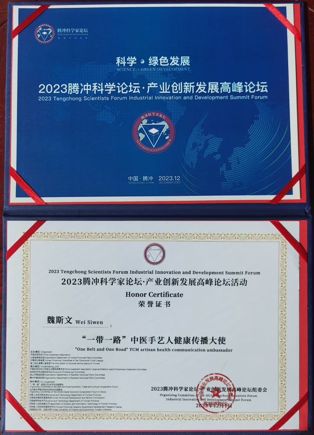 魏莉雯:荣获“一带一路”中医手艺人健康传播大使证书
