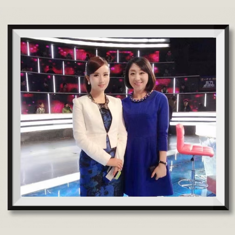 任雪梅:任雪梅老师(右)与节目主持人伏玟晓合影