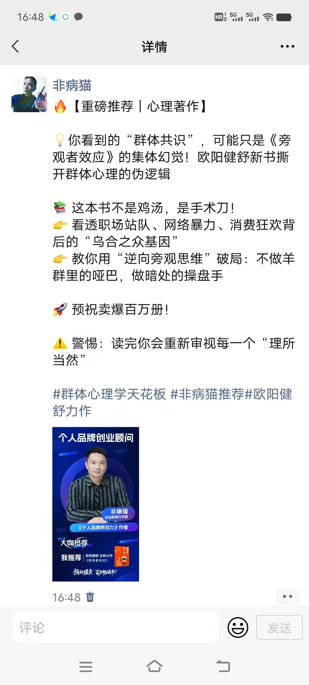 欧阳健舒:新书推荐官:非病猫朋友圈支持