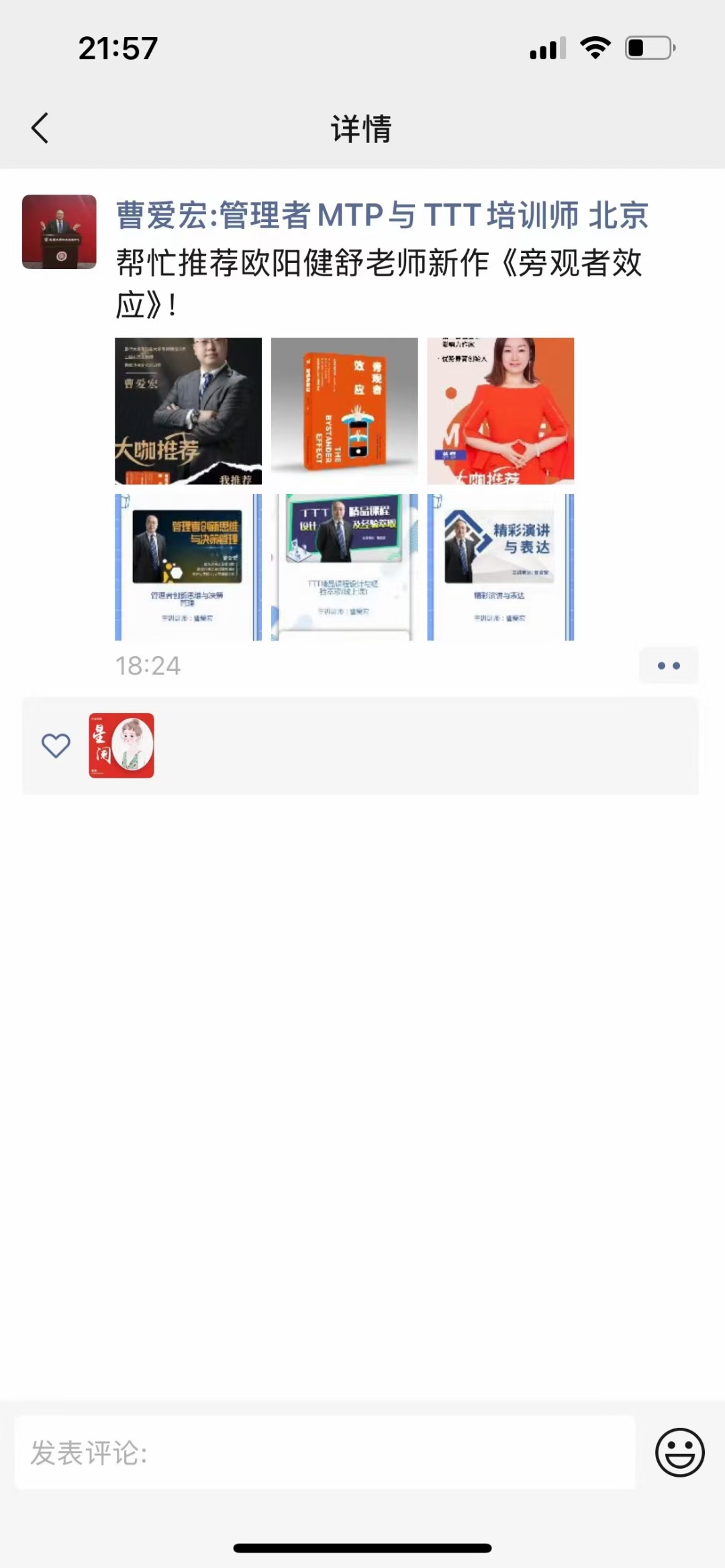欧阳健舒:新书推荐官:曹爱宏朋友圈支持