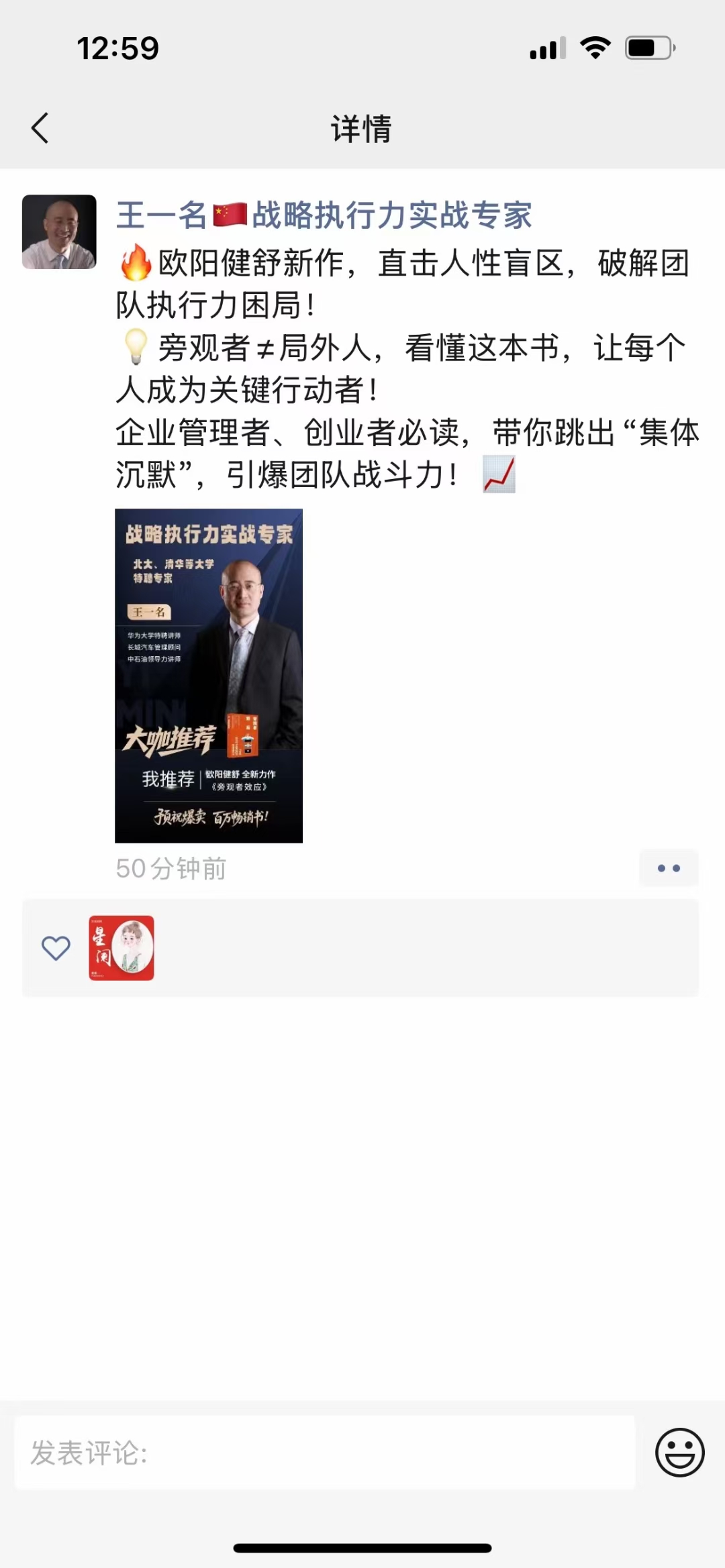 欧阳健舒:新书推荐官:王一名朋友圈支持