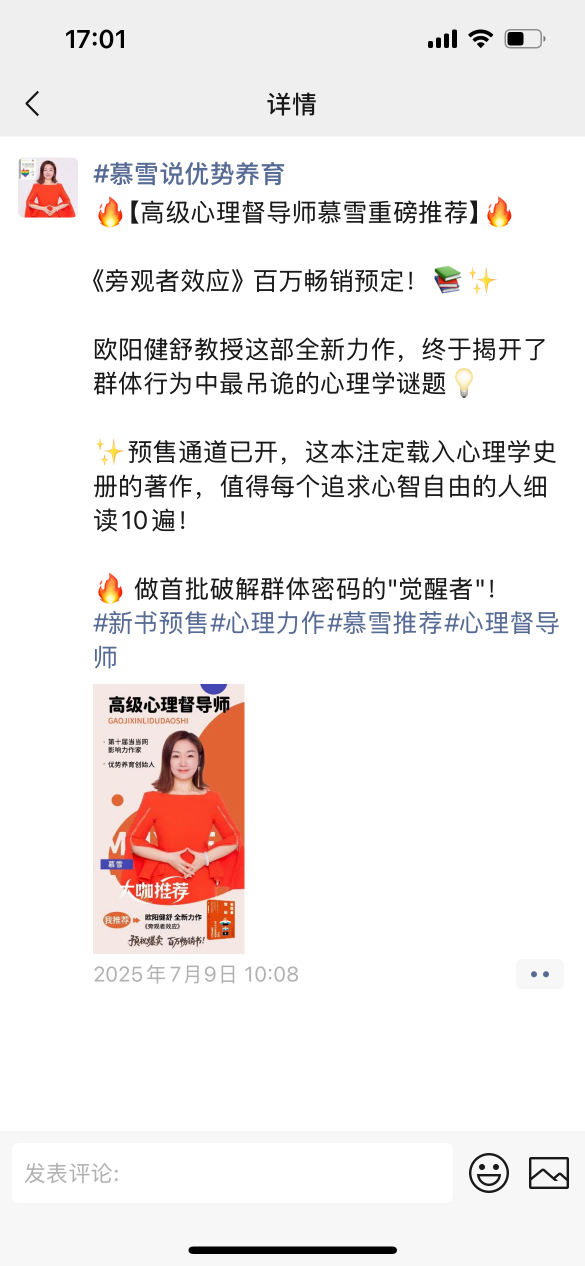 欧阳健舒:新书推荐官:慕雪朋友圈支持
