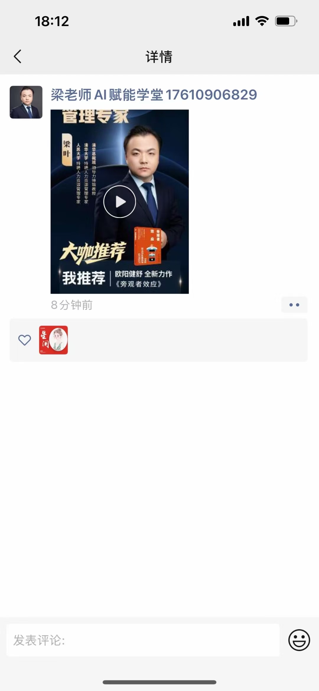 欧阳健舒:新书推荐官:梁老师朋友圈支持