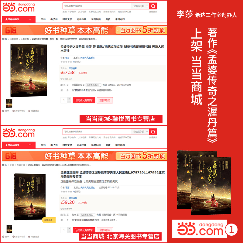 李莎:著作《孟婆传奇之渥丹篇》上架当当商城