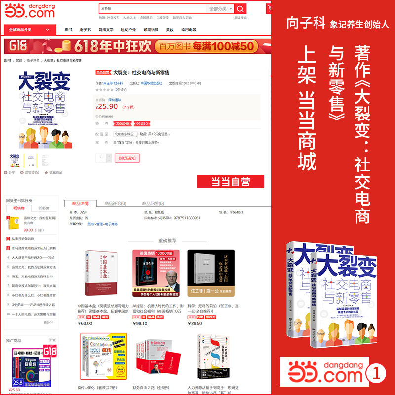 向子科:著作《大裂变 :社交电商与新零售》上架当当商城