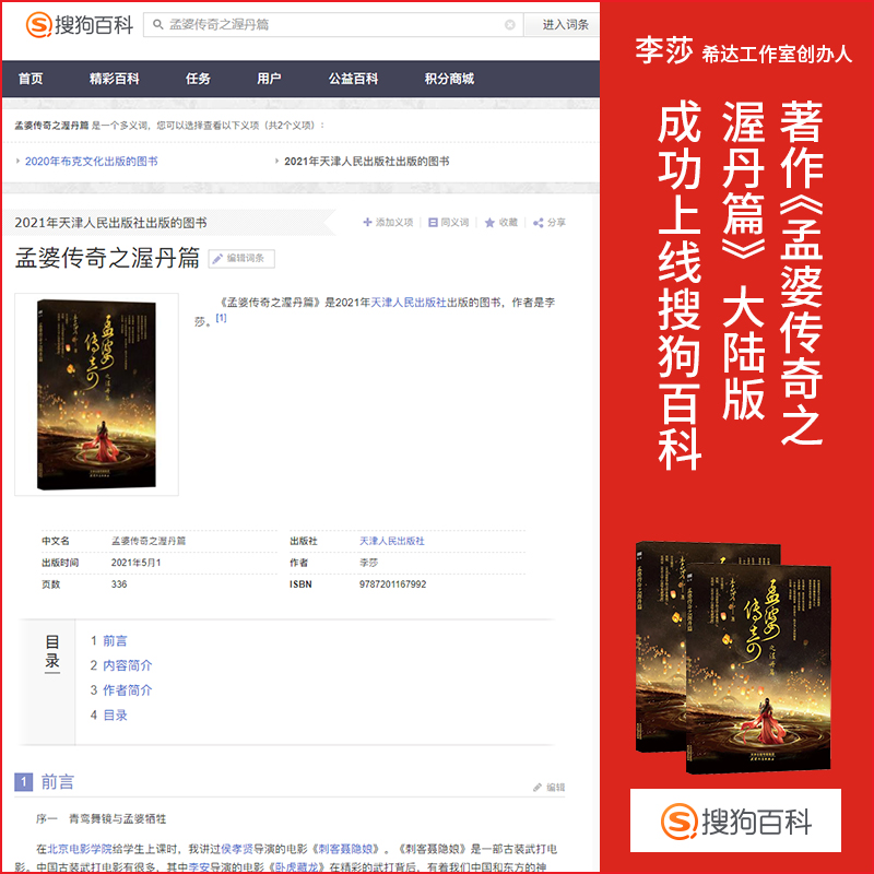 李莎:著作《孟婆传奇之渥丹篇》搜狗百科发布