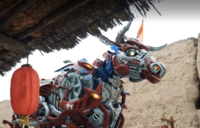 宁夏的镇北堡西部影城,一场前所未有的奇观震撼上演,两只巨型机械巨兽——能动虎和擎天牛的盛大巡游,3.6米高的巨型机械“动能虎”身披白色机甲让影城增添了一分色彩。