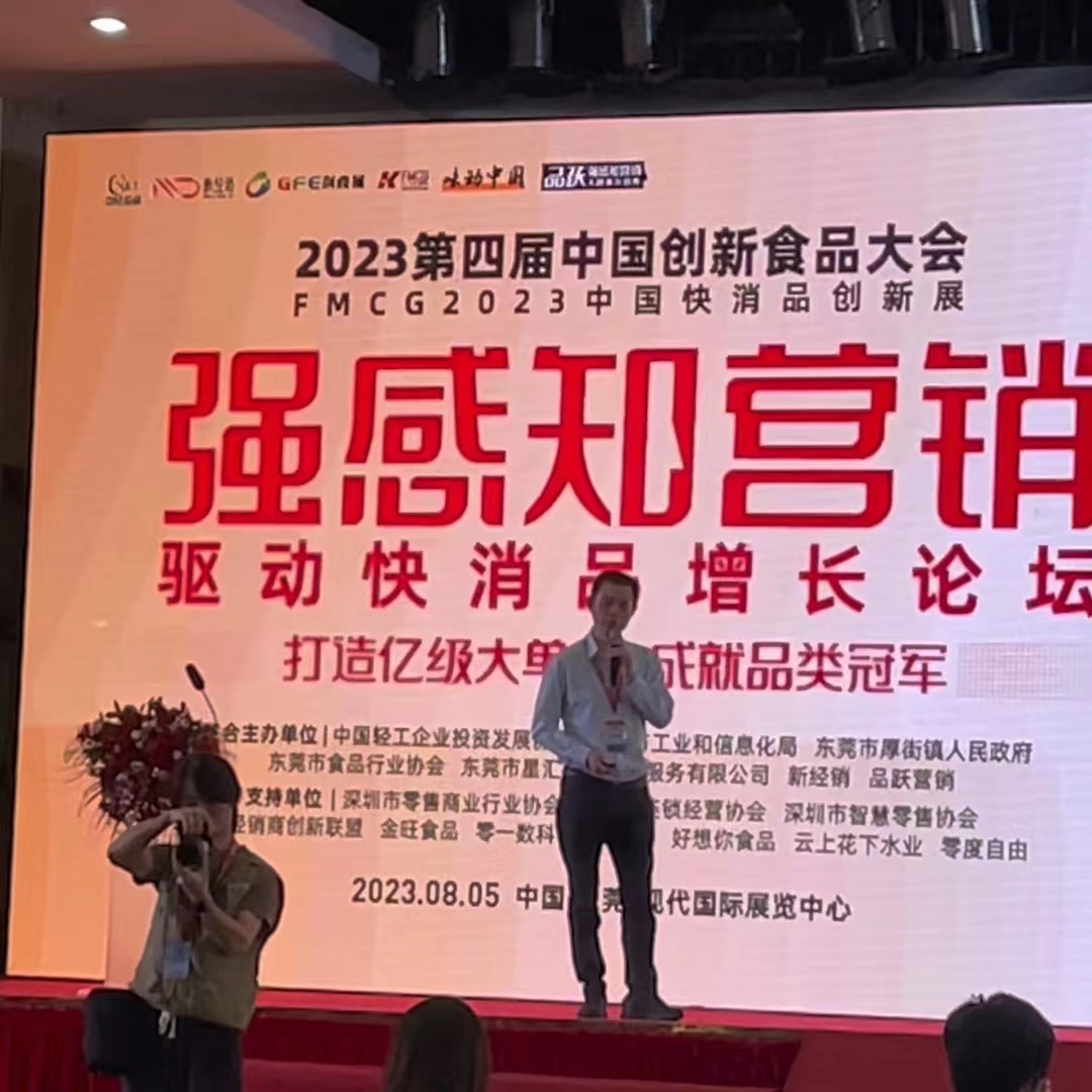陈瑞武老师受邀参加——2023(首届)中国量贩零食产业大会暨供应链品牌路演对接会,并被特邀上台,向大家展示介绍金旺食品的企业文化,以及自己出版的两本著作。
