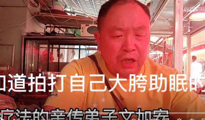 王洪刚老师亲传弟子,成都中医学院文加安,分享经络拍痧疗法,用自己的巴掌在睡前拍打自己的左右大胯穴,30至50次,坚持半个月到一个月,能达到很好的助眠效果。