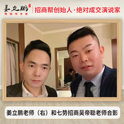 招商帮集团创始人姜立鹏老师与七势招商吴帝聪老师合影,鼓励支持每一个有梦想的人,要学会创业、学会销售,⼈⽣⽆时⽆刻都在成交!