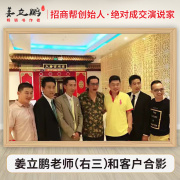 招商帮创始人、绝对成交演说家姜立鹏老师——与客户进行商业交流并合影,为更好的帮助企业与创业者的指引和扶持,通过知识课程等方式,为大家提供一个可以学习和实现梦想的机会。