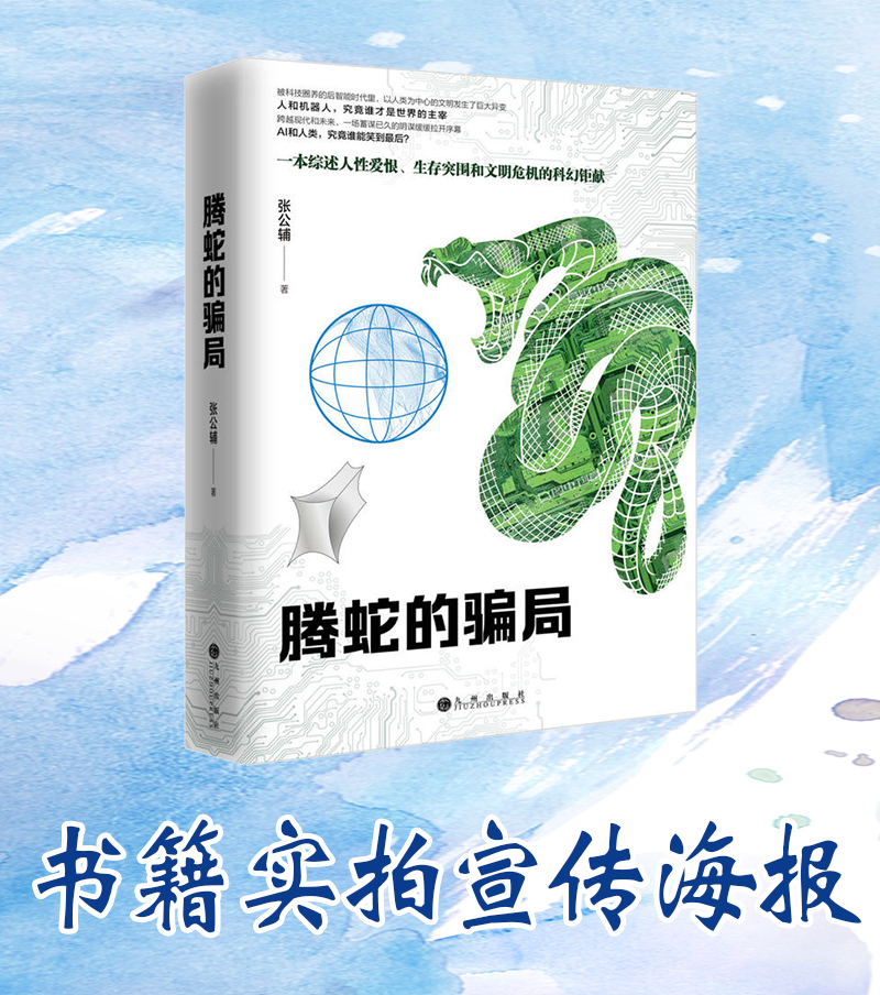宁夏西部影视城董事长,米高猫老师的著作——《腾蛇的骗局》中国大陆版,书籍实拍宣传海报,最强人工智能的战争,且看不一样的科幻之旅,探讨科幻未来的伦理和价值。