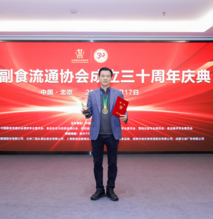 中国副食流通协会成立三十周年庆典活动在京顺利举行,金稻谷食品有限责任公司成功入围登榜,荣获三十年匠心品牌传承奖,同时陈瑞武先生被授予三十年行业深耕贡献奖。