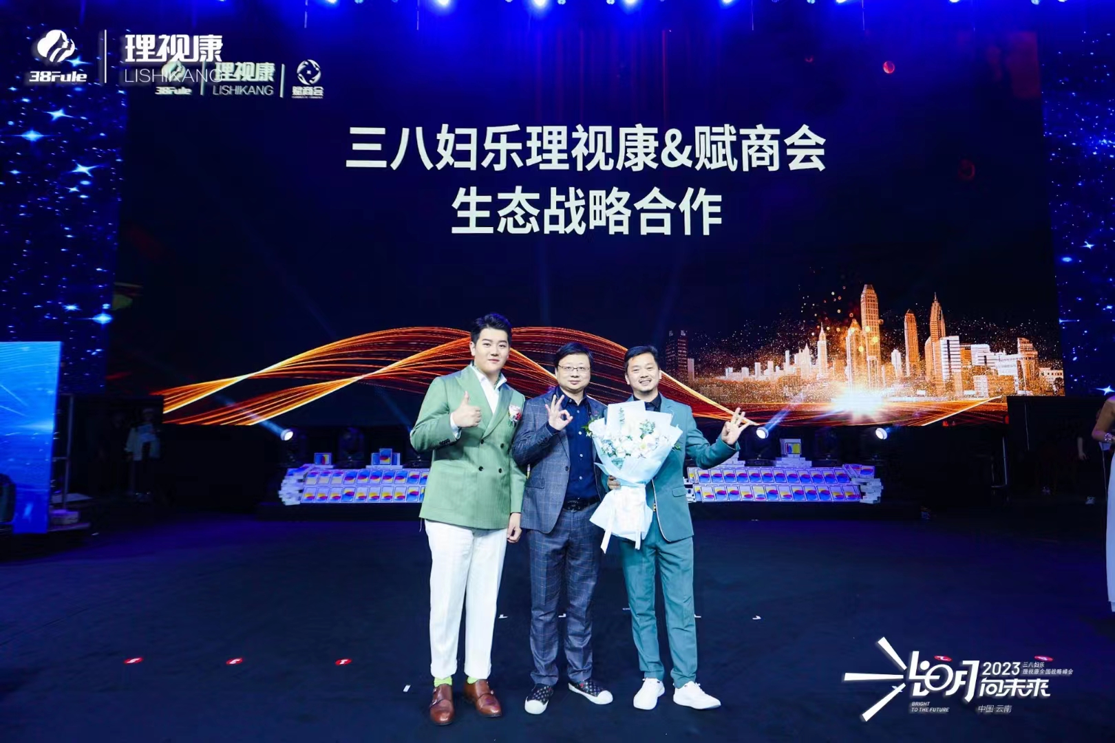 2023光明向未来中国云南三八妇乐理视康万人峰会隆重召开,现场人山人海,火爆异常,赋商会创始人管鹏和郑九洲受邀到场赋能,一起助阵支持集团执行总裁徐伟明。