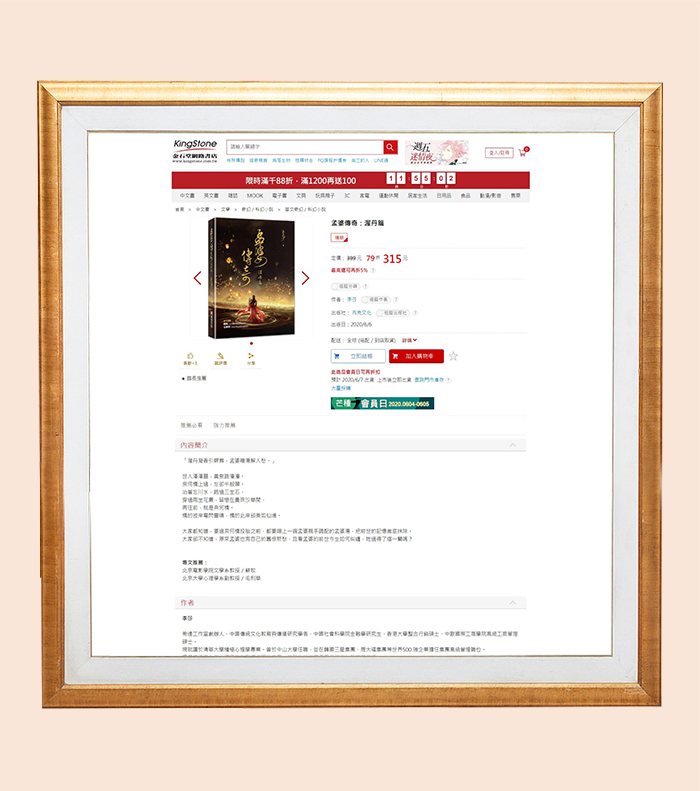 畅销书作者李莎老师著作——《孟婆传奇,渥丹篇》台湾版,台湾书店网页部分截图展示,营销力度大,让别人从另一个视角看待这位中国传统的古代传说人物的情感。
