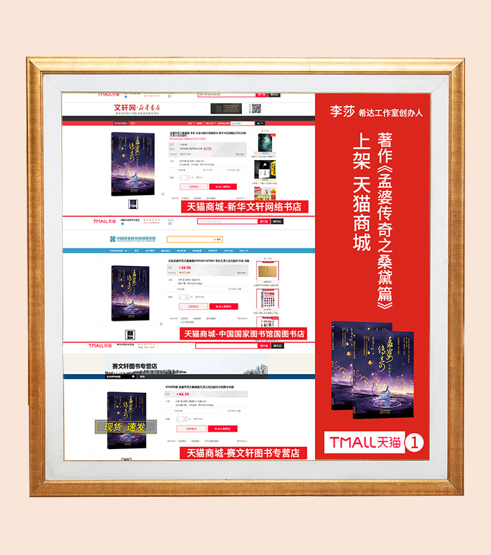 希达文化创始人李莎老师著作——《孟婆传奇之桑黛篇》上架知名购书渠道平台,天猫商城,各大专营店上架进行火爆热销,体现书籍的被认可程度以及书作者较高的个人知名度。