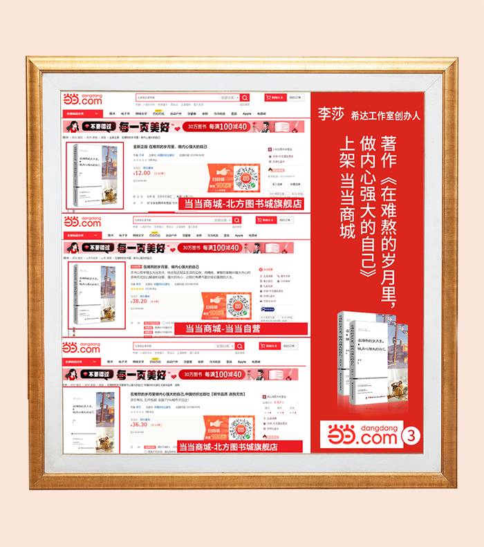 希达文化创始人李莎老师著作——《在难熬的岁月里,做内心强大的自己》上架知名购书渠道平台,当当商城,各大图书专营店上架进行火爆热销,体现书籍的被认可程度以及个人较高知名度。