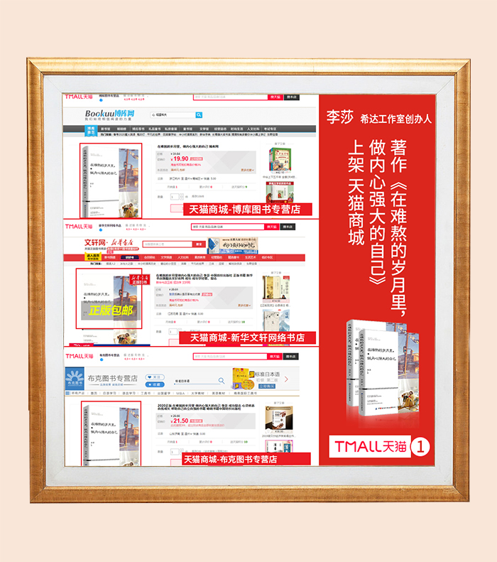 希达文化创始人李莎老师著作——《在难熬的岁月里,做内心强大的自己》上架知名购书渠道平台,天猫商城,各大图书专营店上架进行火爆热销,体现书籍的被认可程度以及个人较高知名度。