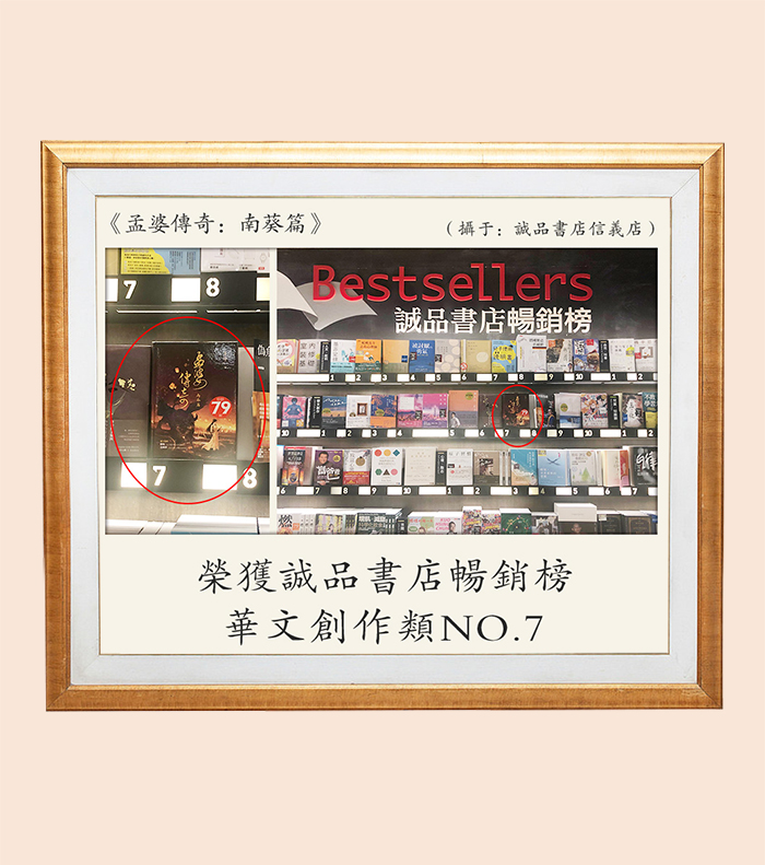 希达文化创始人李莎老师著作——《孟婆传奇南葵篇》台湾版,荣登诚品书店华文创作类排行榜NO.7,体现本书的受众多读者的喜爱,弘扬积极人生观的同时,也兼具了强烈的可读性。