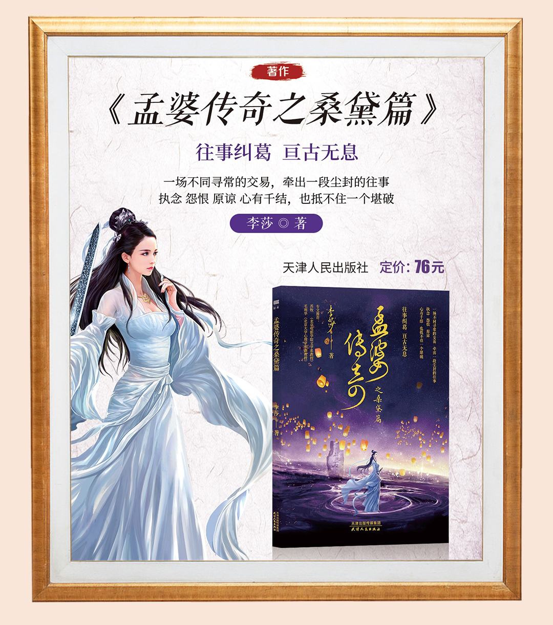 希达文化创始人李莎老师著作——《孟婆传奇之桑黛篇》书籍宣传易拉宝海报展示,可用于多种场合展示,客户来访,签售会、活动现场等可使用,体现作者知名度与书籍价值。