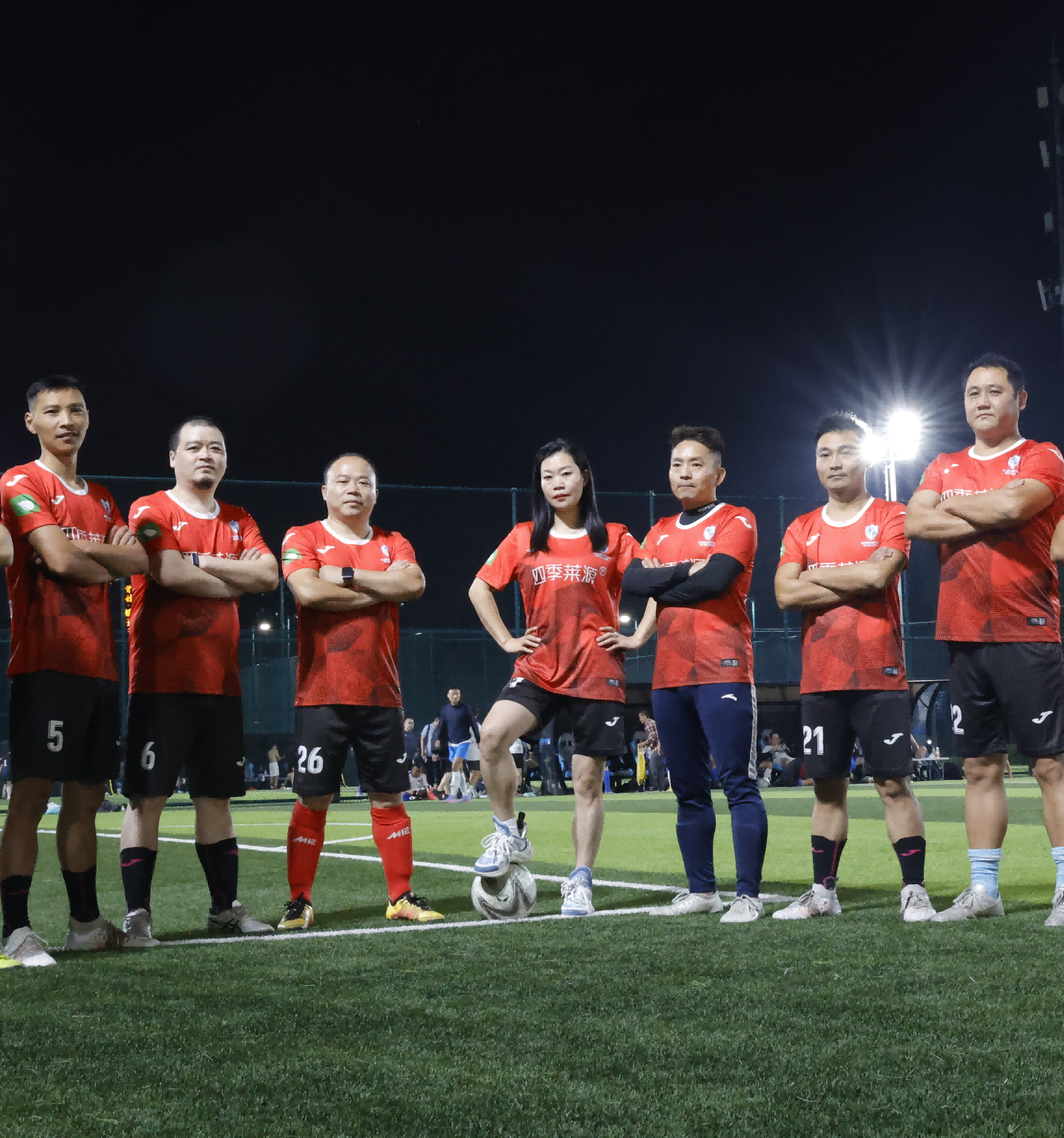 四季莱源作为优秀的赞助商,组建了一支四季莱源足球队,队员们各个身手矫健,敢打敢拼,在绿茵场上挥洒汗水,激烈比赛即将拉开帷幕,四季莱源足球队员们热情高涨,势必拿下比赛。