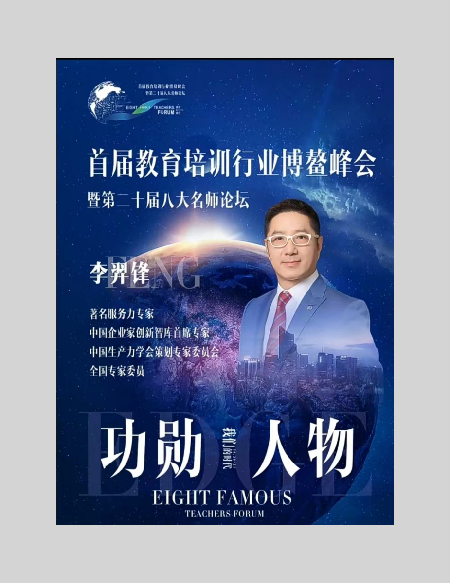 李羿锋老师出席第四届分享中国高峰论坛,李老师具备近三十年企业战略、市场营销、企业管理与培训教育的丰富经验。多年培训生涯,足迹踏遍大江南北,听众数百万,深受好评。