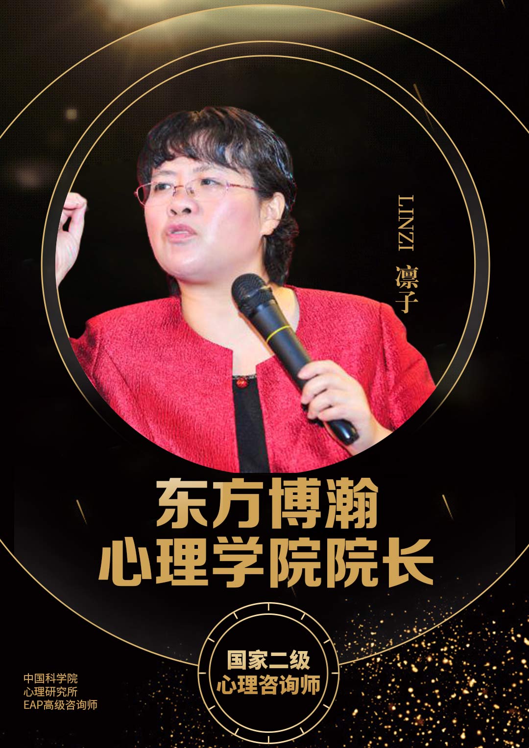东方博瀚心理学院院长(实战型心理培训导师);经济管理学硕士;NLP国际执行师;国家二级心理咨询师;国际注册高级心理咨询师;中国国家人才网高级讲师;